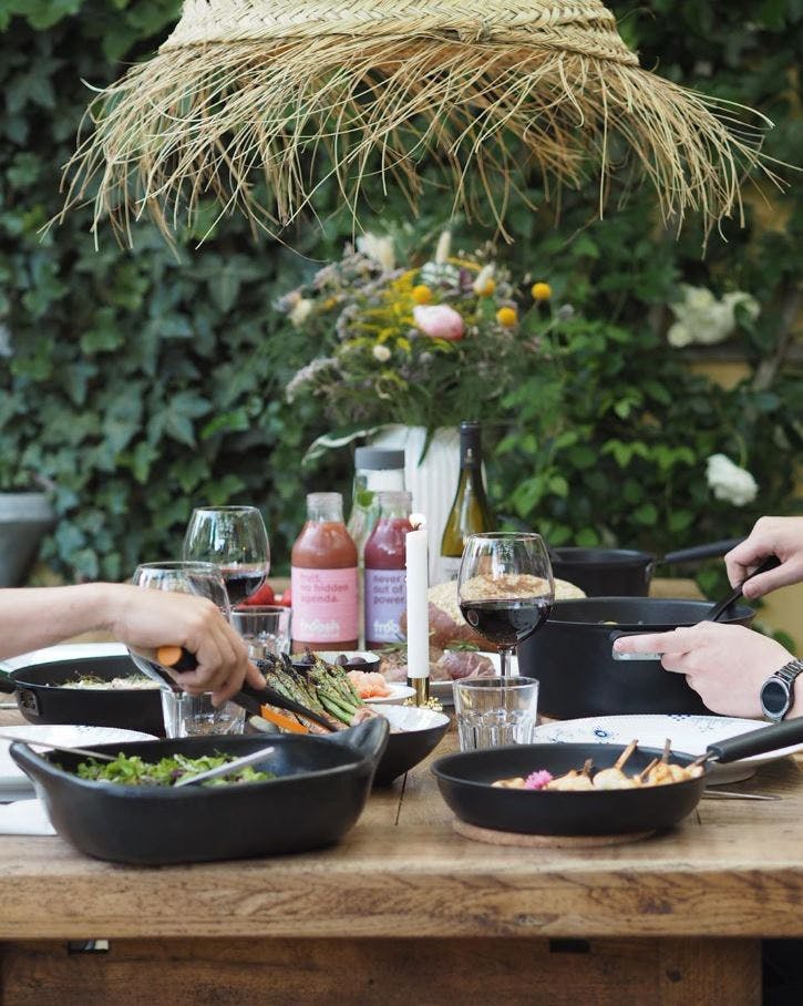 Jeg gleder meg til å kunne spise de fleste måltidene på terrassen igjen. Vi elsker å lage mat på terrassen! Jeg elsker å kunne gå ned i kjøkkenhagen og plukke litt persille, salat eller spiselige blomster. Utover det gleder jeg meg til å plante tomater og agurk i orangeriet. Det skal også bli fint å se Dahliaene mine blomstre, og plukke fine buketter av dem.