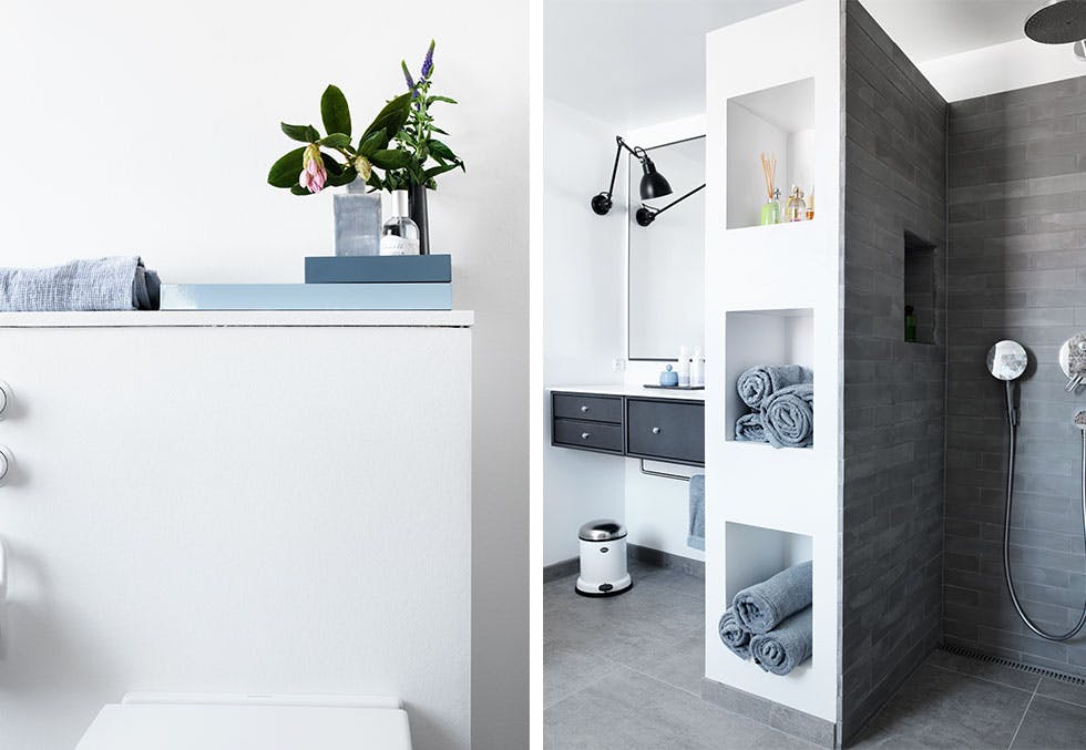 Før & etter Slik får du bedre plass på badet En smart skittentøyløsning sparer plass på badet, mens en lekker gråfarge gjør det lunt og harmonisk.