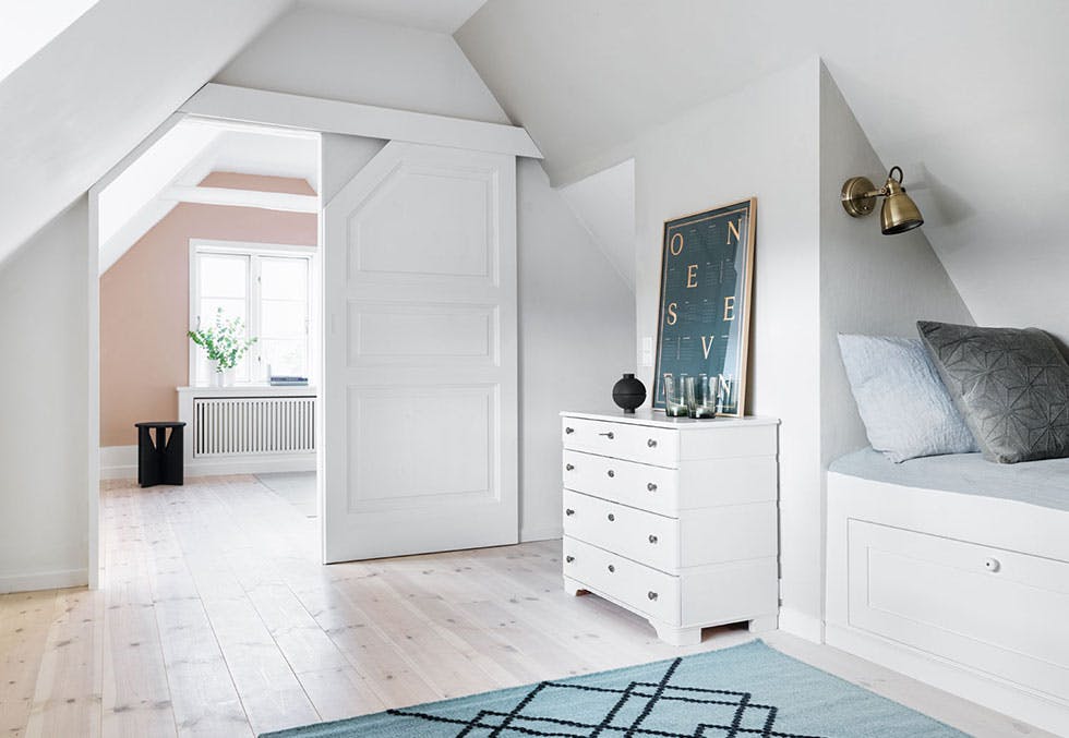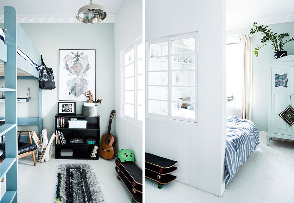 Før & etter Barnerom og sovesone delt på 14 kvm Se hvordan Lone tryllet 14 kvadratmeter om til et kombinert barnerom og soverom for en voksen. Harmoniske farger, hvite gulv og en skillevegg med vindu sørger for å bevare stilen.
