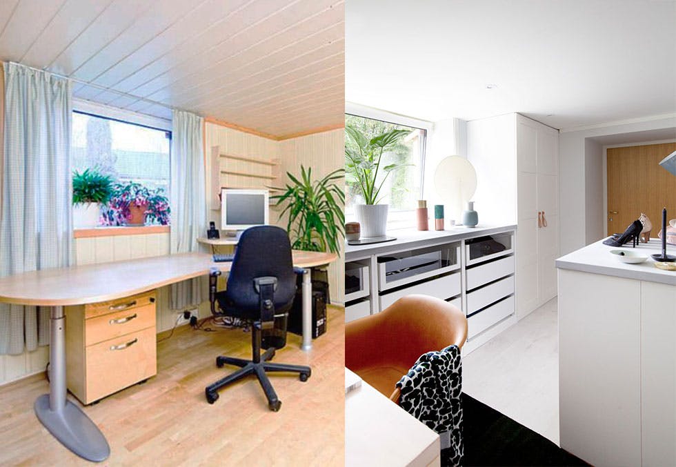 Før & etter Ja da, dette er det samme rommet! Marthe og Ronny gjorde om et slitent kontor til nydelig og praktisk walk-in closet.