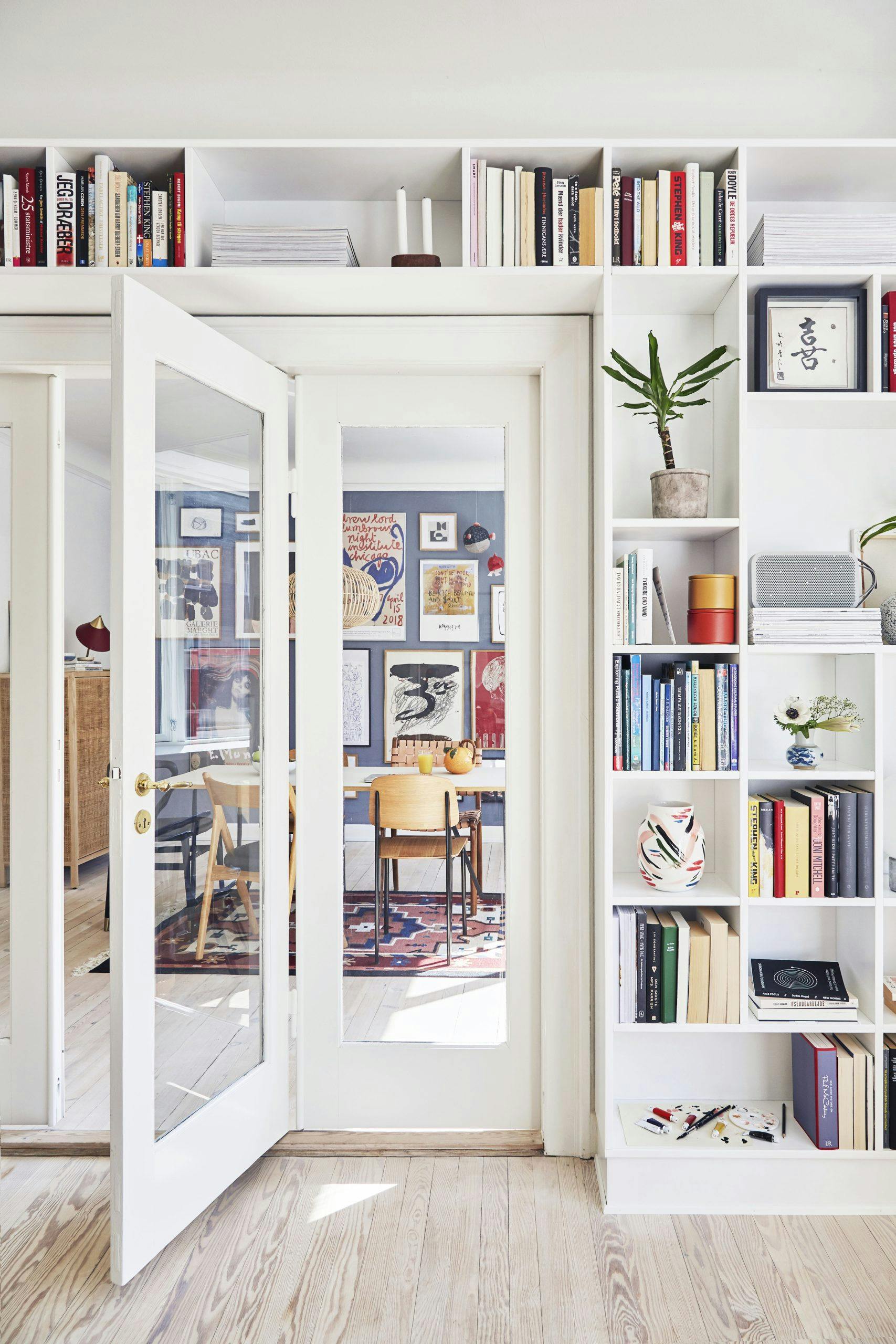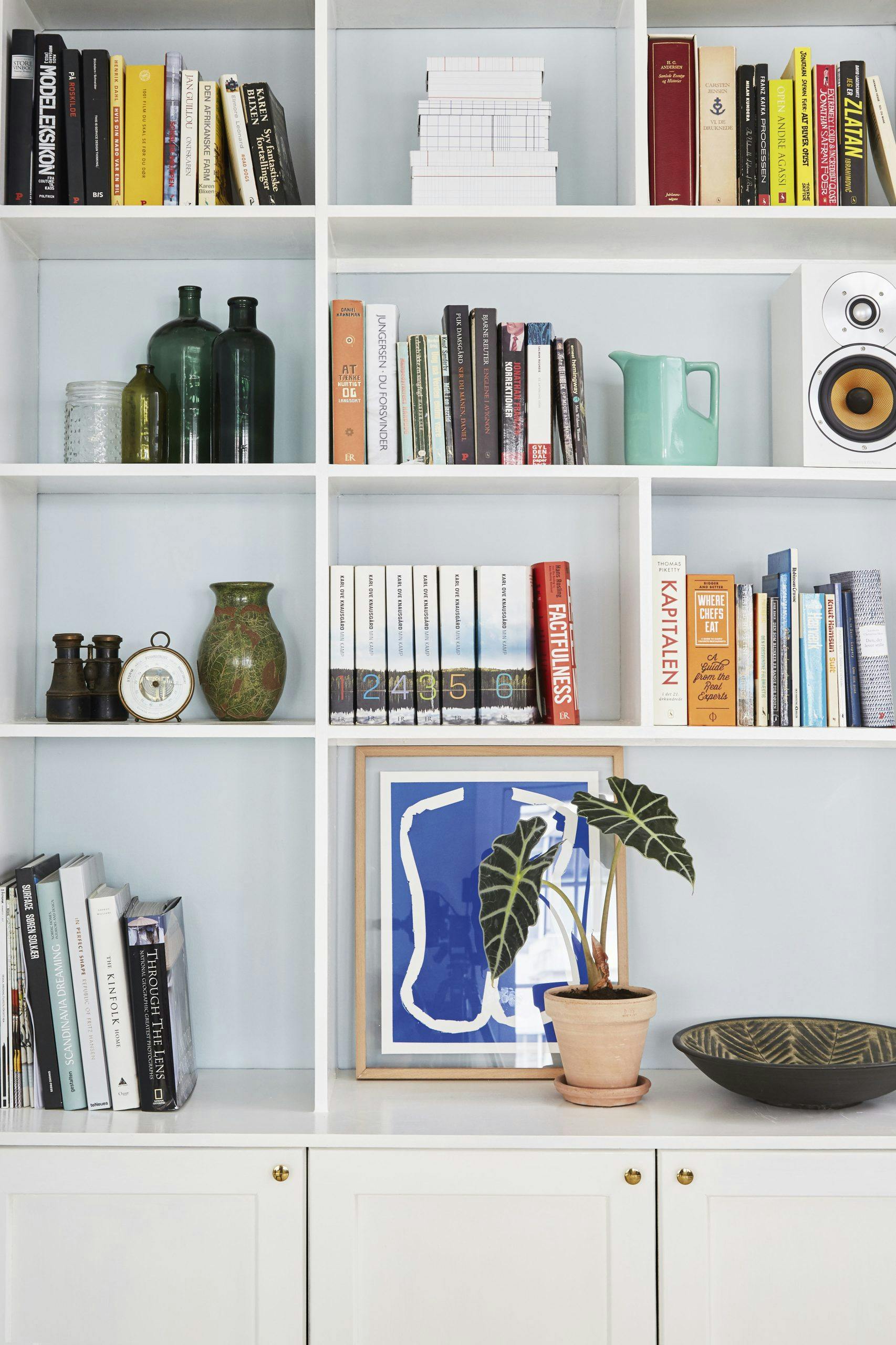 1. En innebygd hylle gir rommet mengder av karakter og oppbevaringsplass. Tenk for all del gjennom hva du trenger plass til, slik at du kan skreddersy hyllen etter behov og den ikke ender opp som et eneste rot. Skal hyllene f.eks. være dype nok til store bøker? Og hvor mye trenger du å gjemme vekk bak skapdører? Lag en skisse over hva som skal hvor før byggingen starter.