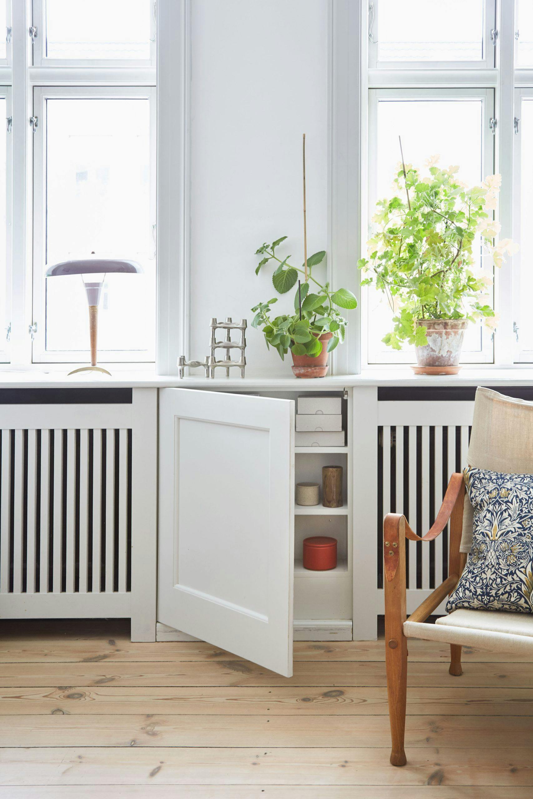 4. Bor du i leilighet med sentralvarme og radiatorer, kan du gi innredningen ro og stil med radiatorskjulere. Det fins fine byggesett som du kan tilpasse boligen din, men det kan også være en god investering å få en snekker til å bygge en spesialtilpasset løsning som blir akkurat slik du vil ha den og som tar høyde for alle små vinkler.
