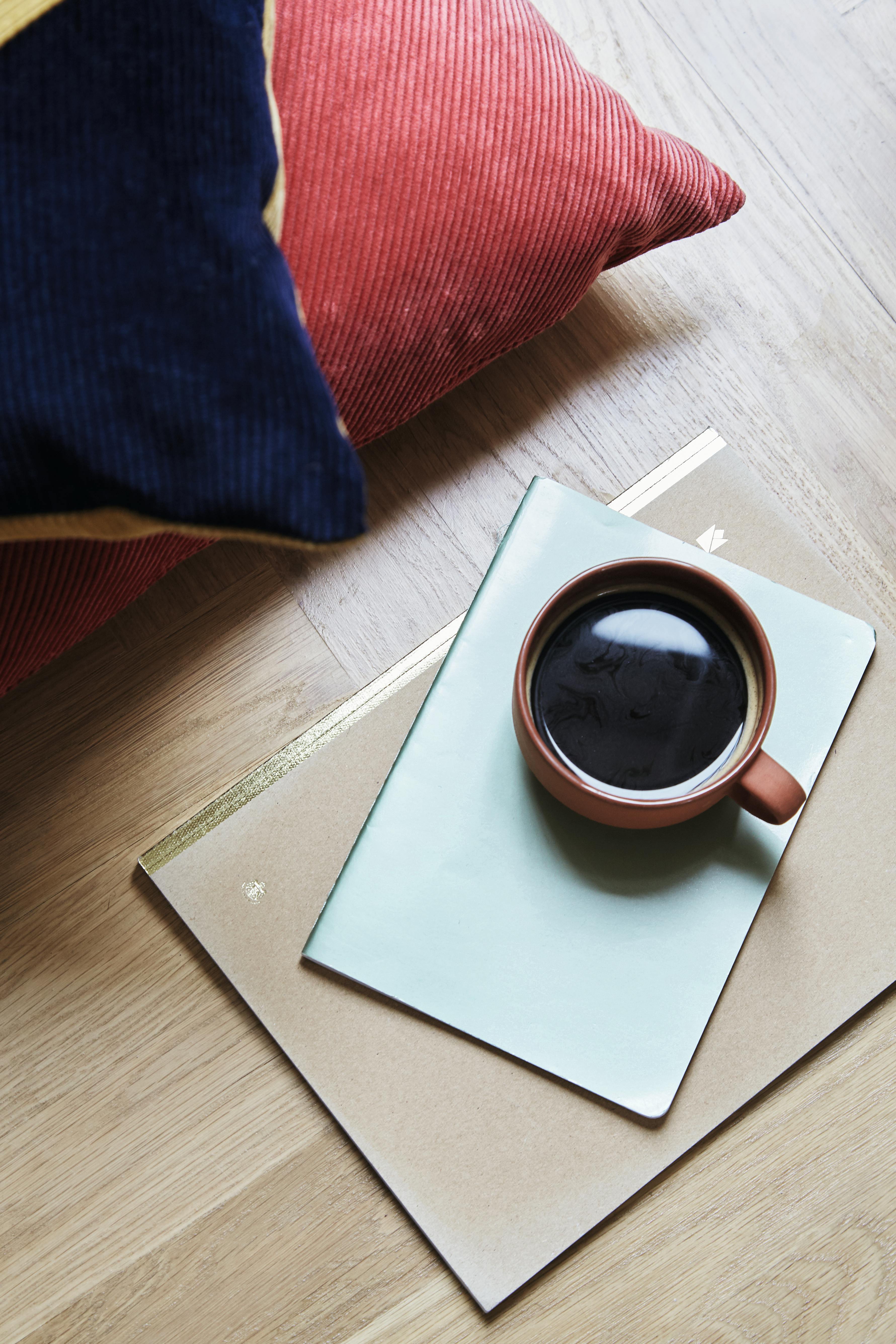 Myke puter fra Louise Roe og kopp fra Skagerak frister til en stille stund på kjøkkenet.