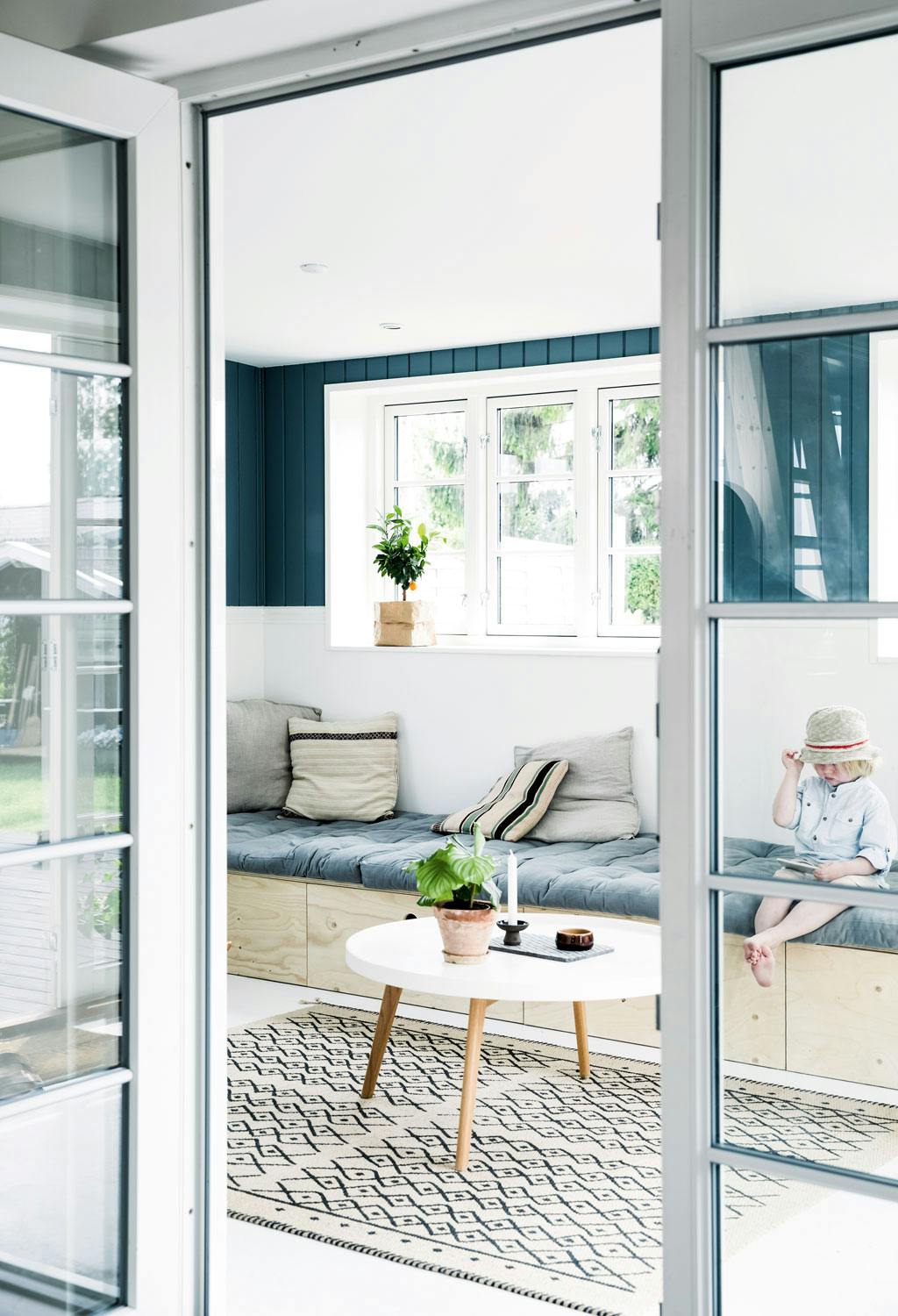 Camilla og Lasse ønsket seg en kolonihagehytte der barna kunne leke fritt og endte med å tegne og bygge den selv. Et stort allrom og kreative løsninger gjør hytta perfekt både for store og små.