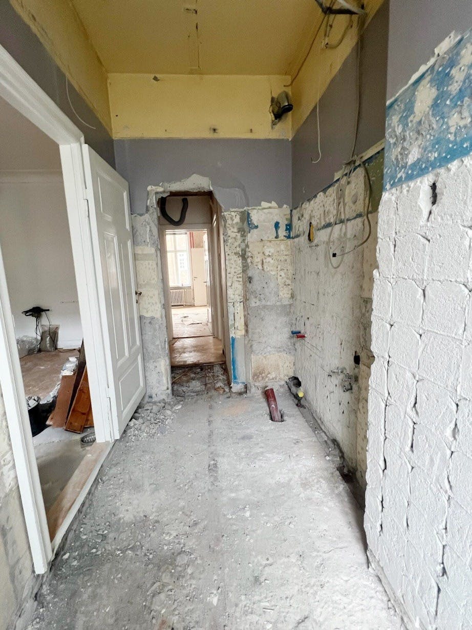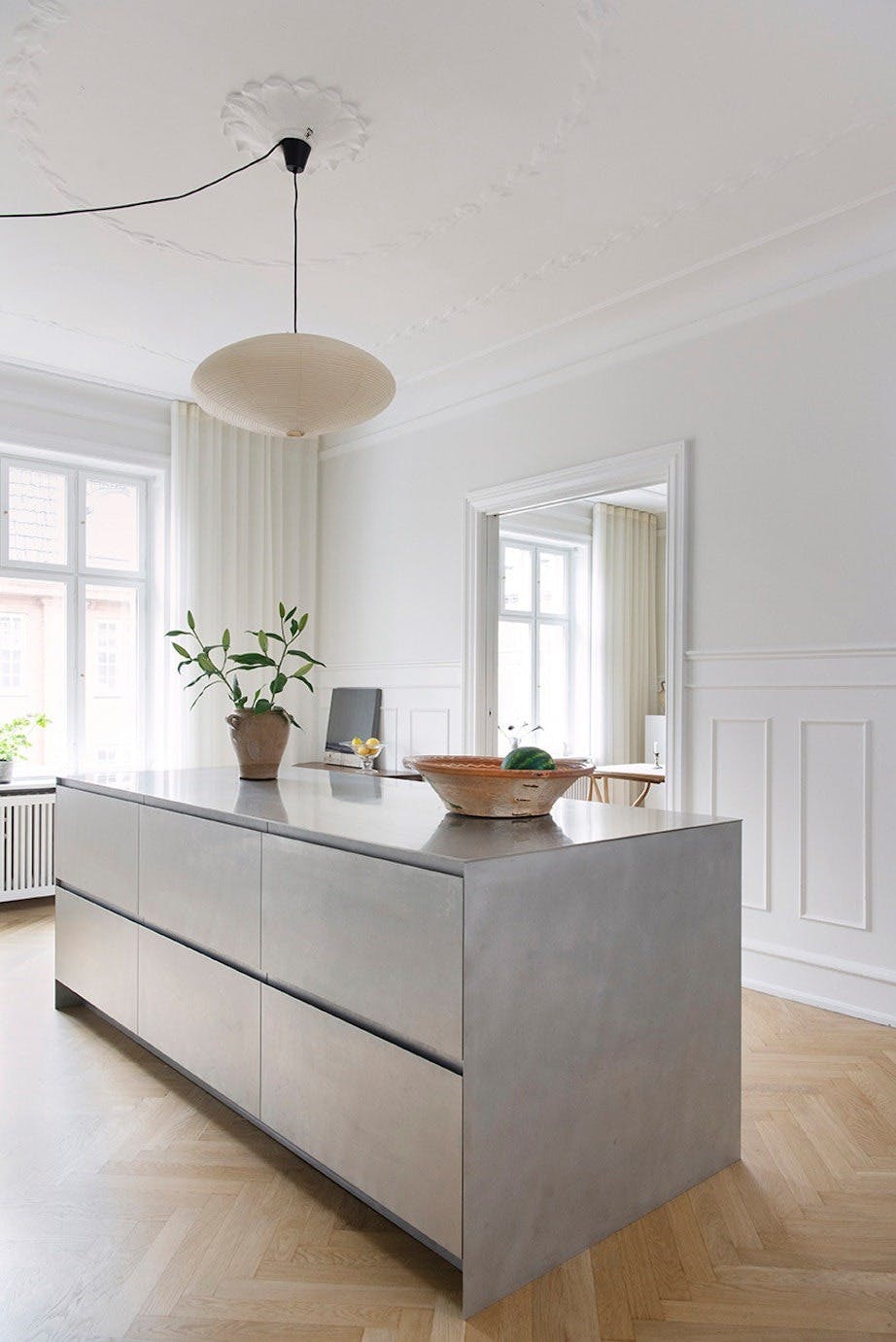 På ett vesentlig punkt valgte paret likevel å endre leiligheten. Opprinnelig lå kjøkkenet i et mindre og mer avsides rom, men de drømte om å flytte det inn i en av stuene for å skape sammenheng mellom kjøkken, spisestue og stue.