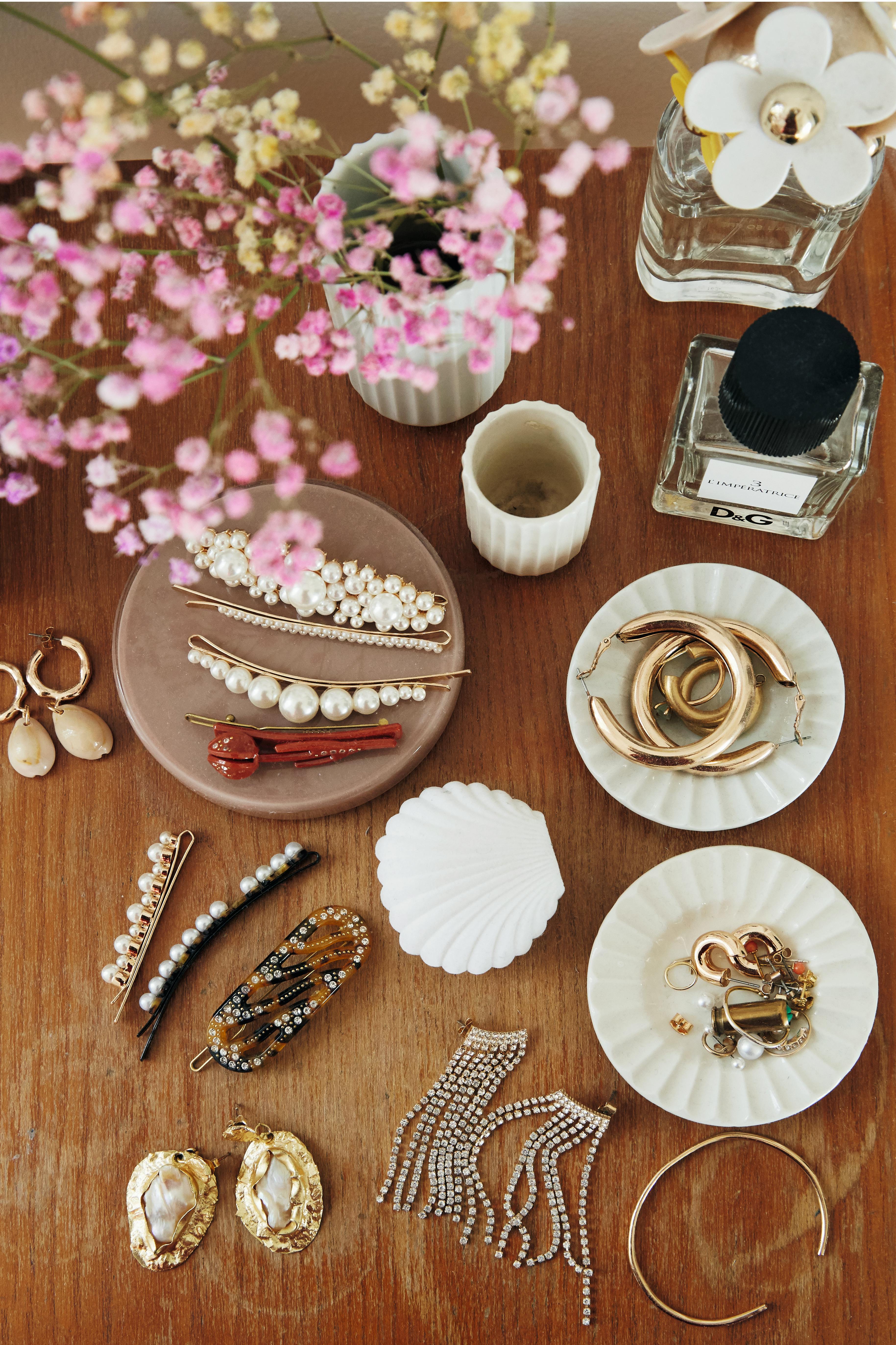 Sidsel bruker helst bare ett smykke av gangen, men hun liker å ha mange fremme til pynt sammen med fine parfymeflasker og vakre, små skåler og vaser.