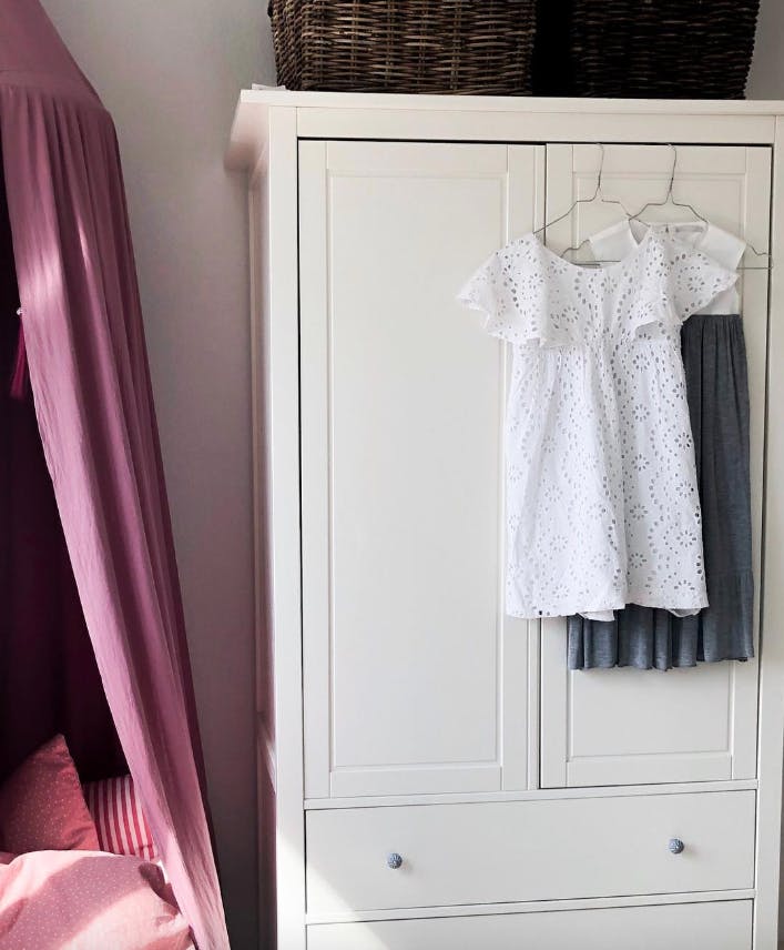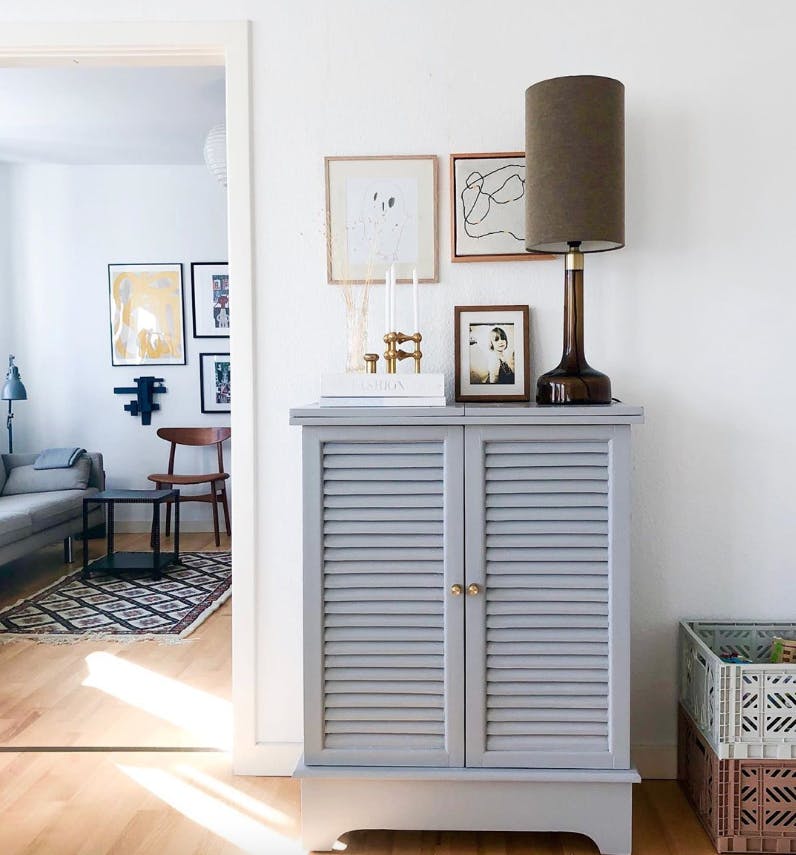 Mitt beste tips er å søke etter fine skap og skjenker på Dba.dk (den danske ekvivalenten til Finn.no red.anm). Disse kan man male, slipe eller beise etter stilen man har hjemme. Bruktsider er også perfekt for å finne fine skap i en god kvalitet i stedet for å kjøpe nyproduserte skap som ofte er dyrere og i dårligere kvalitet.
