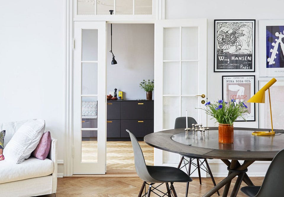 Leiligheter Se den smarte skyvedøren som skiller stuen fra soverommet Når to kreative hoder flytter sammen, kan det oppstå magi. Dét er Jan og Joshuas hjem et godt eksempel på. Her kræsjer farger og materialer sammen på utradisjonelt og spennende vis, samtidig som det hele går opp i en harmonisk enhet.