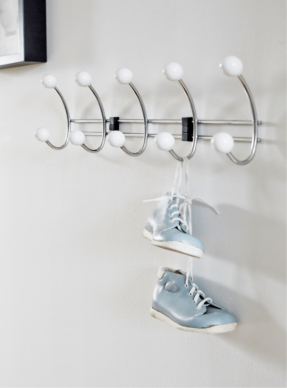 I barnefamilier kan det være lurt å gi både barn og voksne hver sin knagg. Når alt har faste plasser, slipper man at gulvet flyter. Og barna syns det er ekstra stas med egen farge på kroken. Habo har flere serier med kroker og krokrekker i spreke farger.