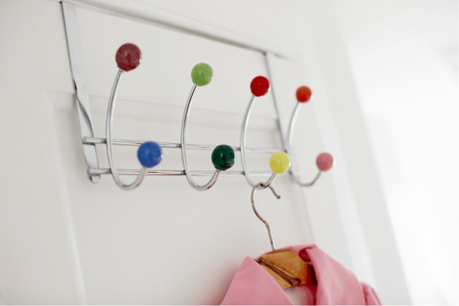 Men husk å henge knaggene i riktig høyde. Barna må selv rekke opp til knaggene sine. Da blir ryddighet en lek.
