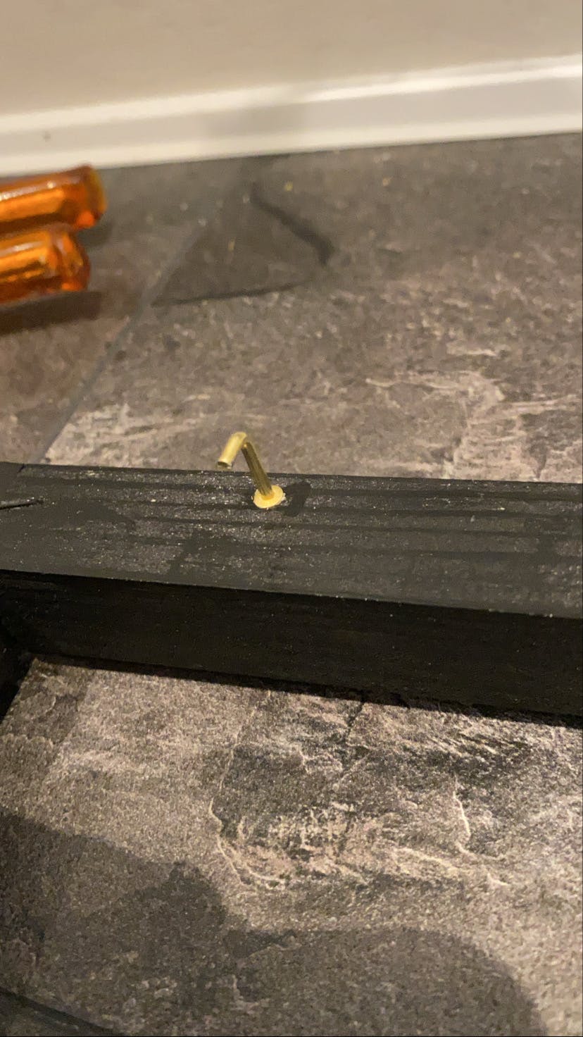 TRINN 6 Skru krokene i øverst på rammen. Bor eventuelt et mindre hull først hvis du ikke kan få den i med håndkraft.