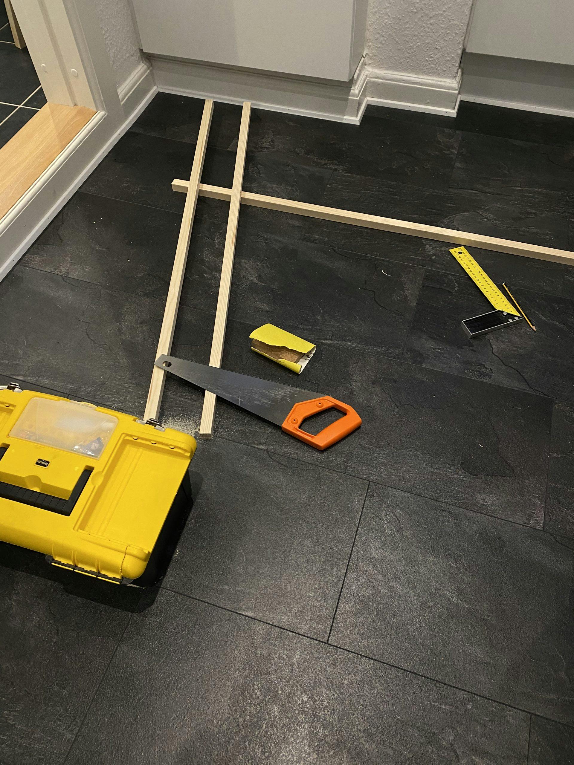TRINN 3 Mål hvor lang de horisontale listene skal være og sag de til.