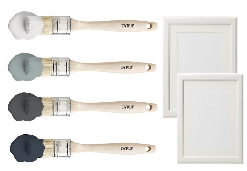 Eller gjør det enkelt og bruk i stedet en billedramme (uten glass og bakbekledning). Mal øverste del av veggen i en farge og nederste del samt listene i en annen farge.