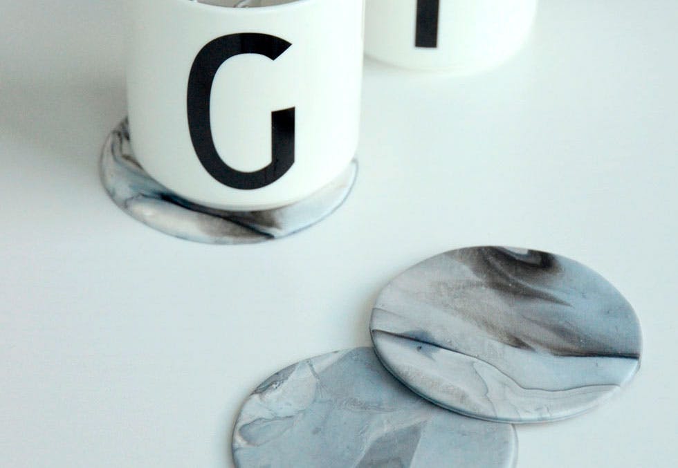 DIY Slik lager du kule marmorbrikker Ved å bruke fimoleire kan du lage disse stilige glassbrikkene som beskytter bordet ditt mot våte flekker.