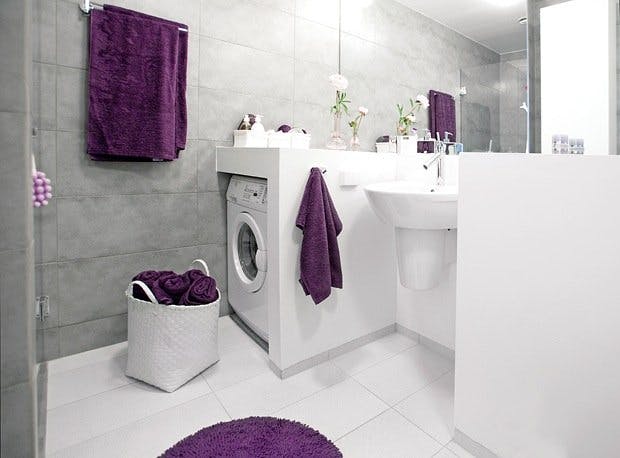 Uansett hvor mye eierne prøvde, var det ikke plass til både dusj og vaskemaskin på badet. En interiørkarkitet ble koblet inn, og løsningen ble å byge en dusjnisje inn i et skap. Da ble det endelig plass til vaskemaskin. Ved å bygge inn vaskemaskinen, har eierne fått mere benkeplass og et ryddigere inntrykk. Speilveggen går i hele badets bredde, og virker forstørrende. Hvite fliser gir maks romfølelse. KLikk videre og se hvordan de fikk mer plass.