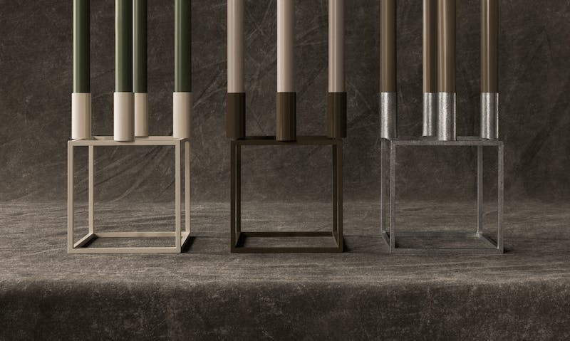 For å markere sammenslåingen mellom MENU og By Lassen, lanserer Audo Copenhagen den ikoniske Kubus 4 lysestaken designet av Mogens Lassen i tre vakre nye farger: Zink, Ivory og Olive.