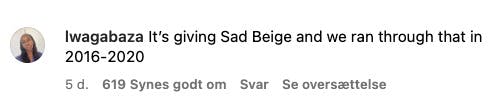 I en kommentar til en sak om farger på @diet_prada-profilen, som er kjent for å dissekere popkulturen kritisk, skriver brukeren @edh_interiors