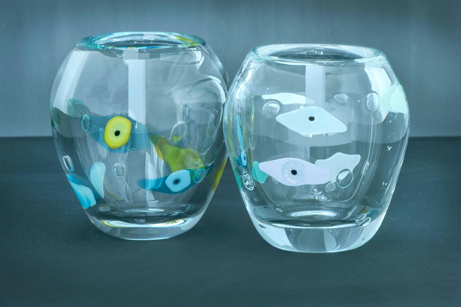 Glasskunstner og smykkedesigner Camilla Prytz lar seg gjerne inspirere av den fargerike verdenen under havets overflate. Vasen kommer i to varianter – Fish Bowl og Eye Bowl, hver i to fargekombinasjoner. 2700 kr.