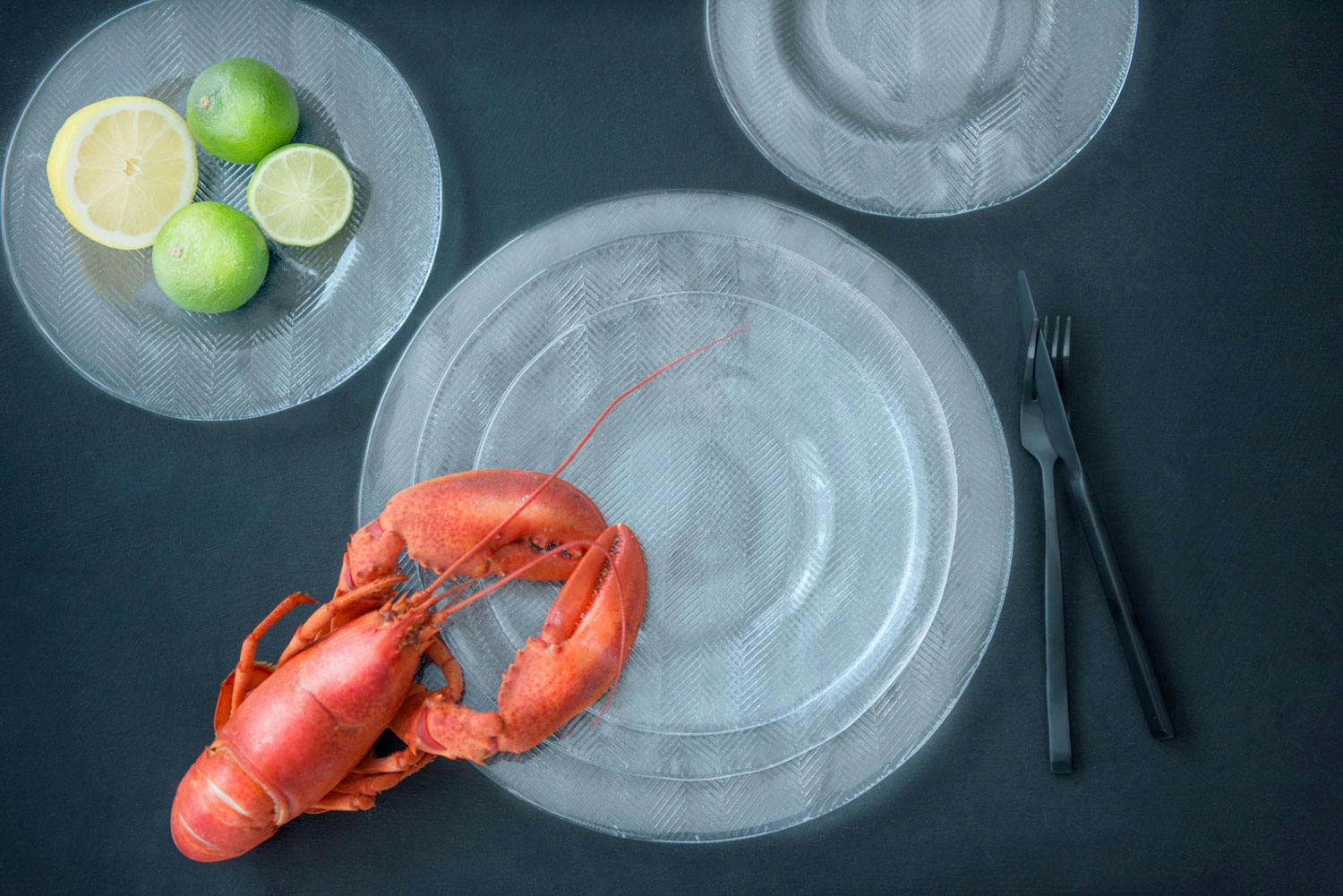 Tallerknene, som er designet av den kjente interiørdesigneren Halvor Bakke, kommer i tre størrelser (fra 269 kr). Kombiner gjerne krystalltallerkner med porselen for et personlig uttrykk, er Halvors eget borddekkingstips.