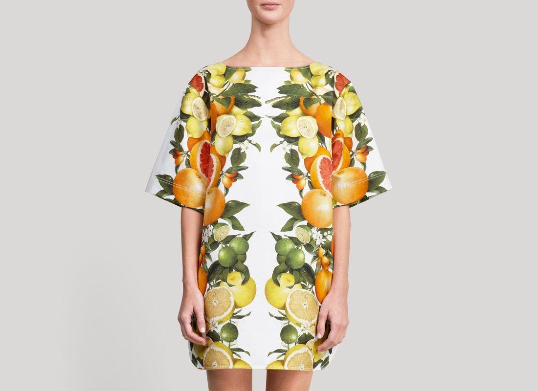 Sitronen hadde sin storhetstid våren 2011, da Stella McCartney presenterte en kolleksjon med sitrus på hvit bakgrunn, og sitroner plutselig havnet på alles lepper. Både morgenkåper, minikjoler og vesker var en del av McCartneys kolleksjon som ble kopiert over en lav sko, til og med i form av et kakedesign! Og nå er den her igjen!