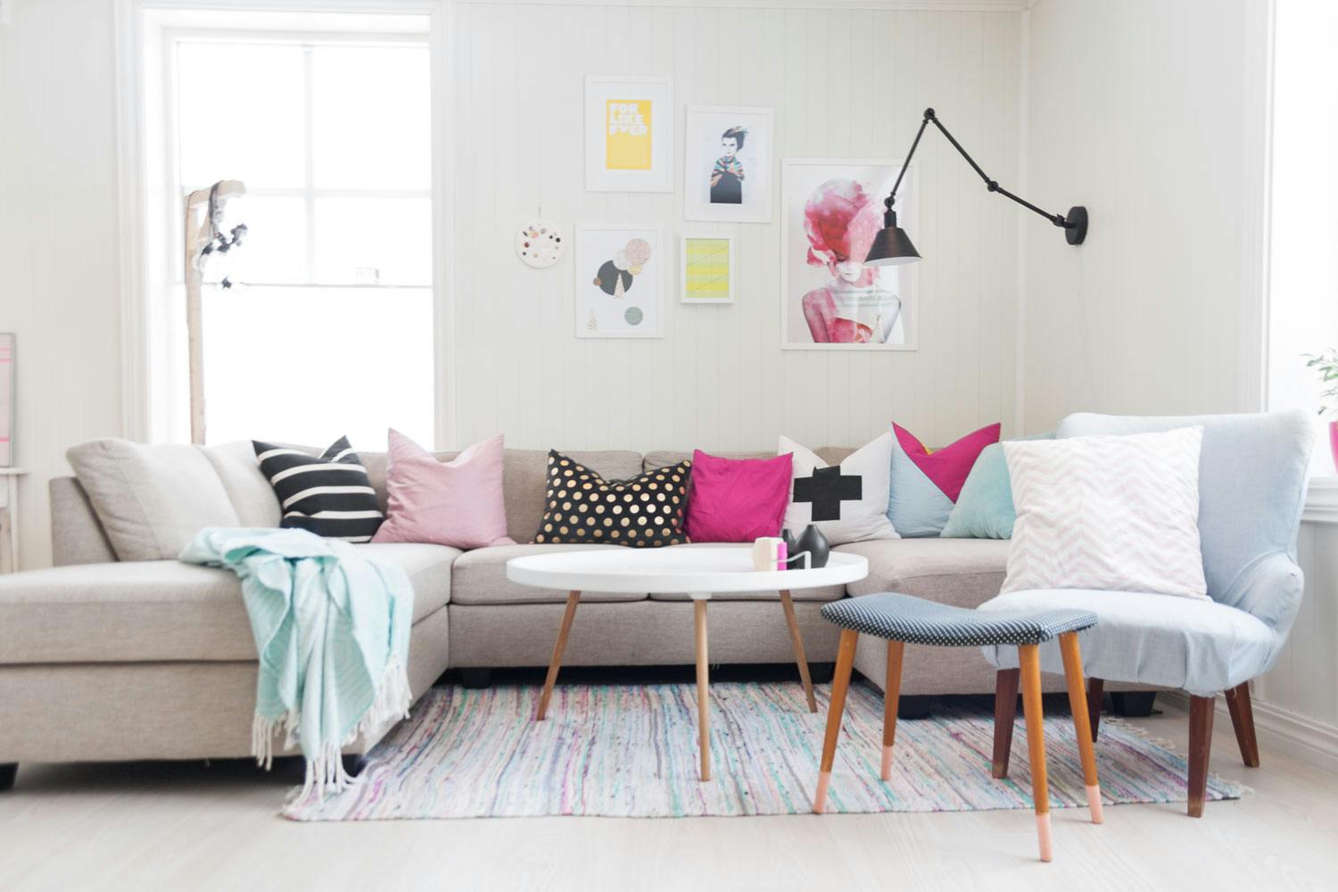 Stilen er en miks av farger, nordiske, moderne og retro elementer og lekne DIY-prosjekter.