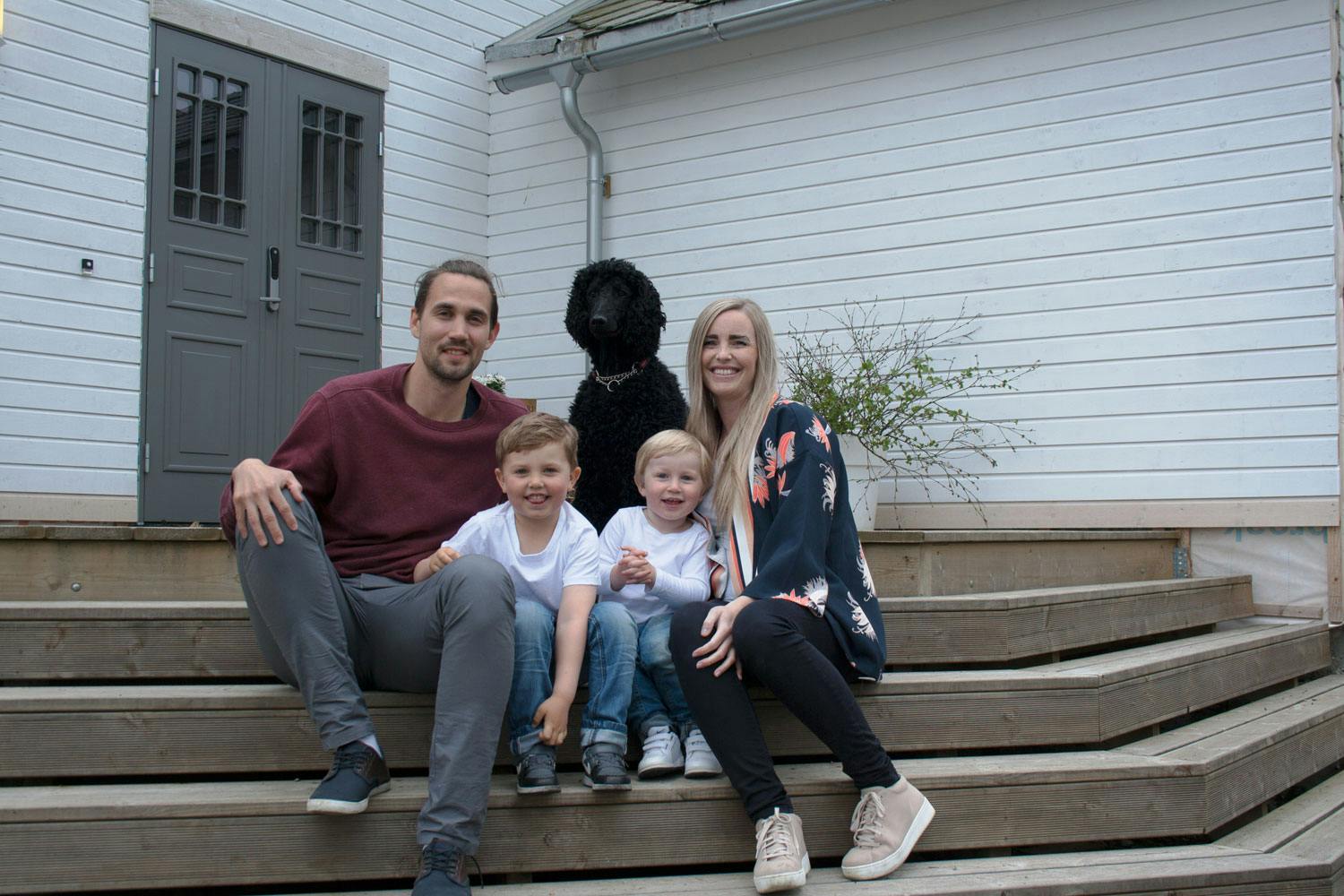 I november samme år kunne de flytte inn – sammen med barna William (5), Ludvig (3) og hunden Abra. Den gamle doktorgården er fra 1918 og ligger i Melbu i Nordland.