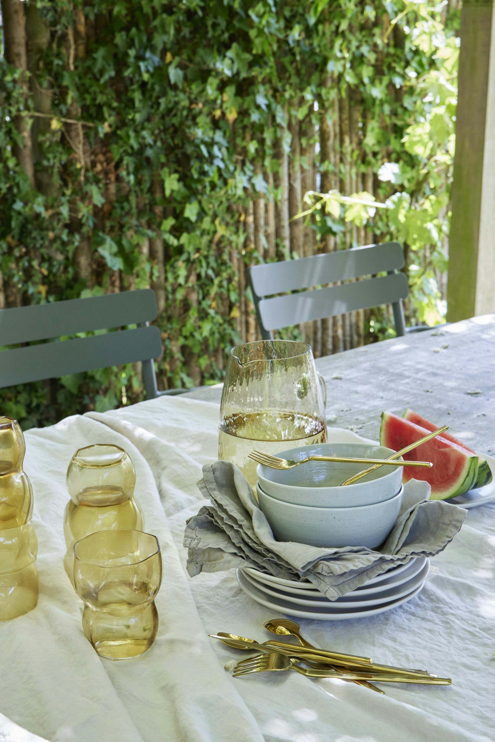 Bordet har en avslappet oppdekning med glass, servise og bestikk fra Broste Copenhagen.