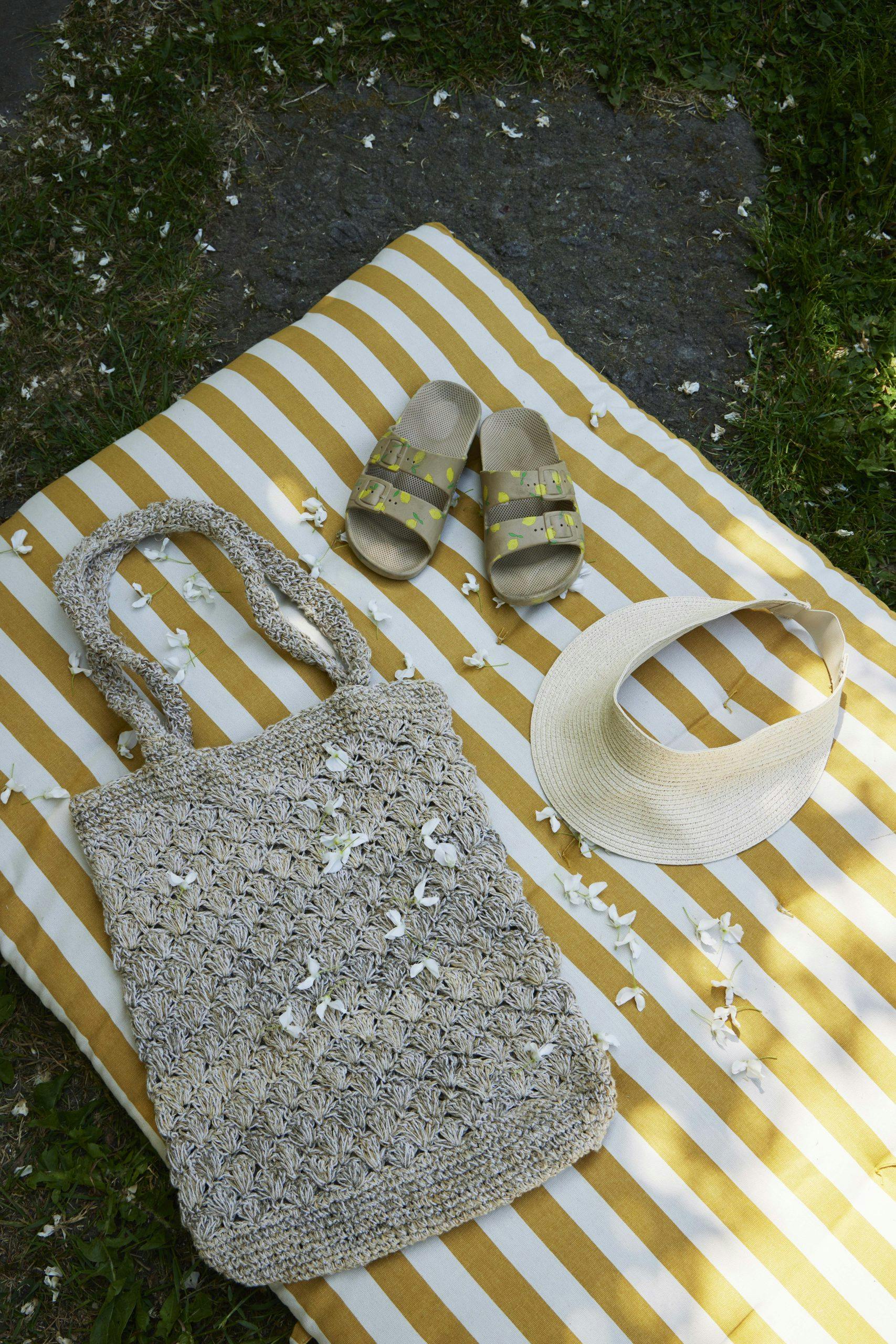 Den stripete puten er fra Broste Copenhagen, sandalene fra Freedom Moses og nettet fra Care by Me.
