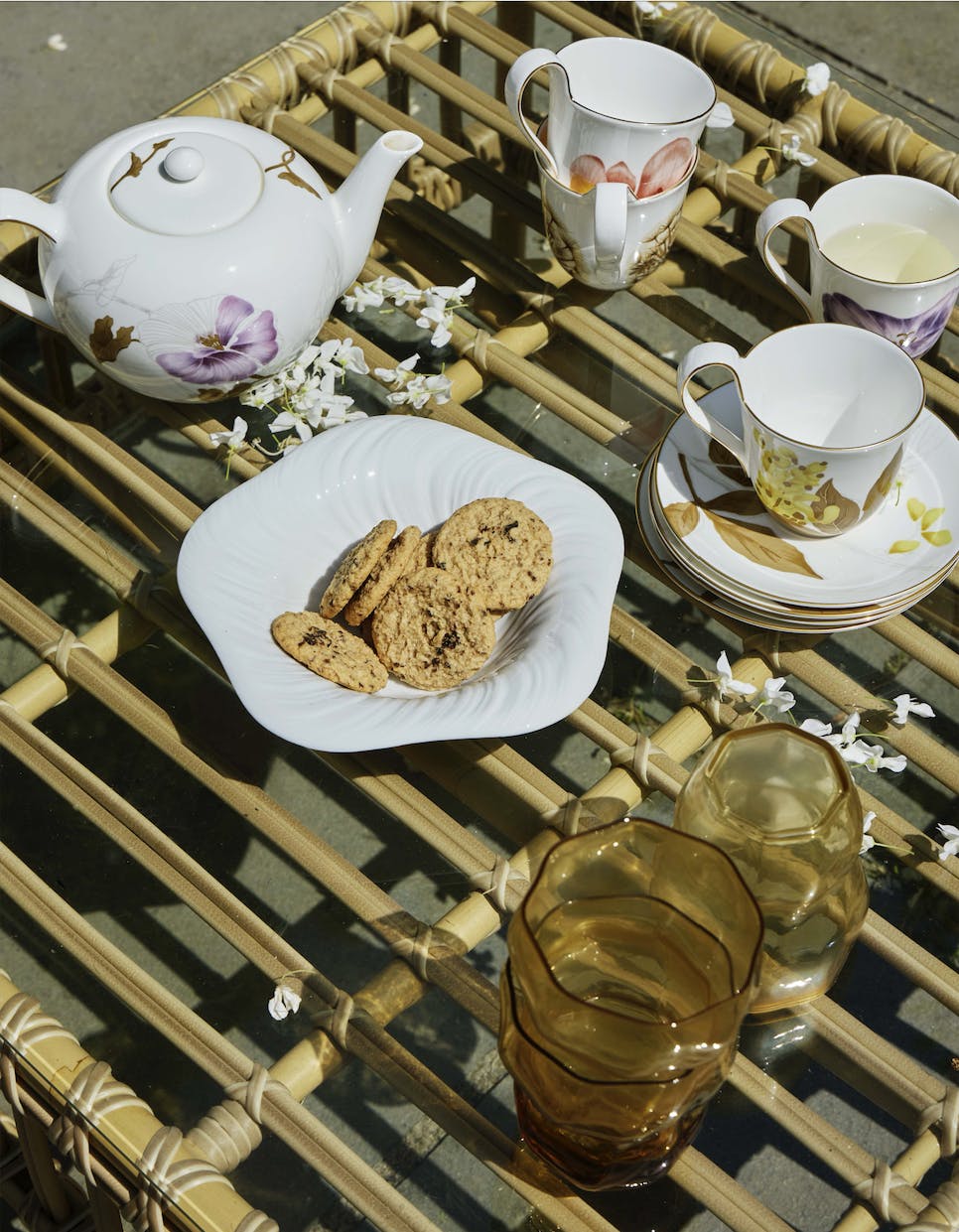 Flora-serviset fra Royal Copenhagen er perfekt til et lite teselskap i hagen.