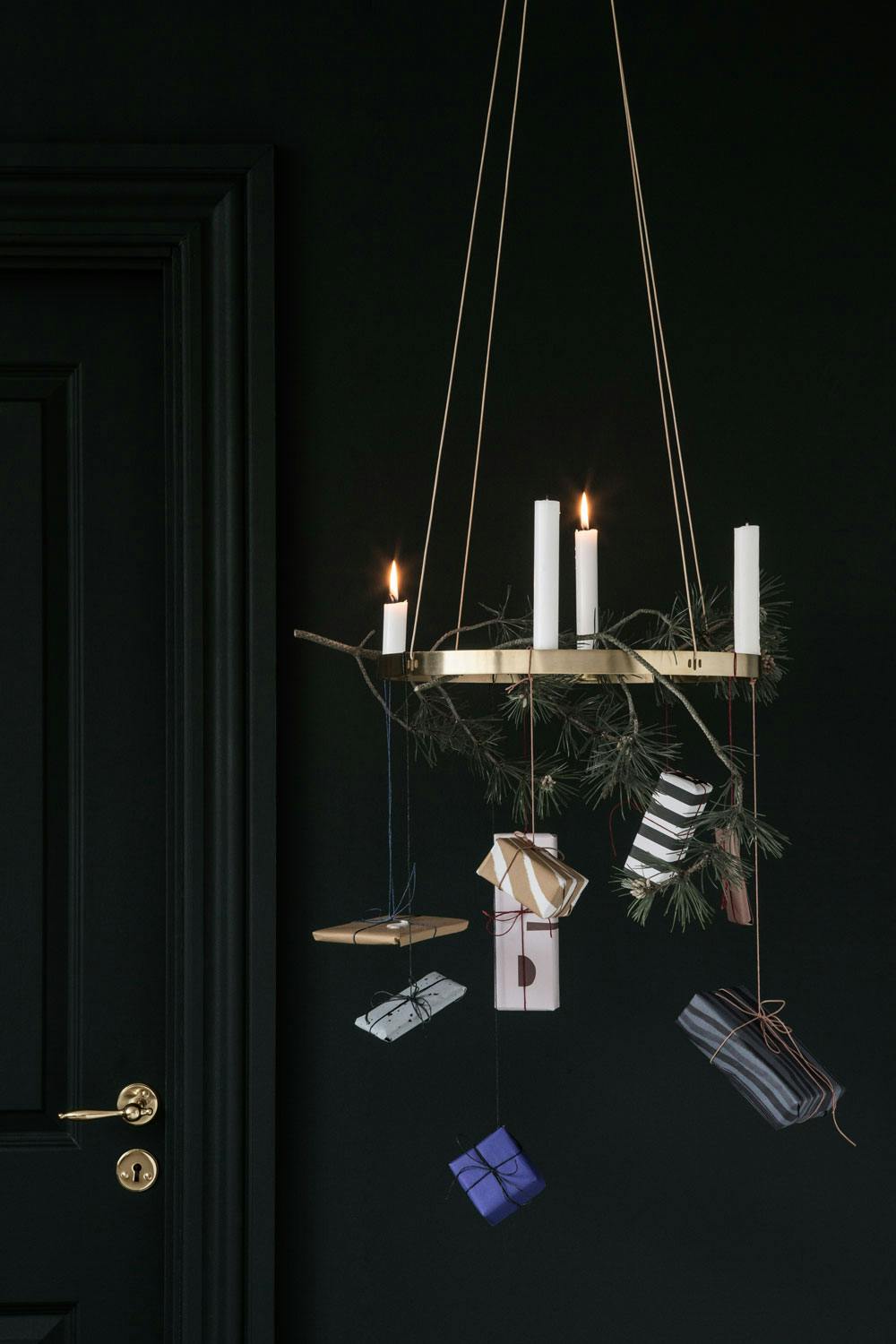 Hvorfor ikke kombinere to av ventetidens høydepunkter? Smart, dekorativt og enkelt! Vi vil dog anbefale å være litt forsiktig med granbar - desember er ikke bare høytid for jul, det er også høytid for brann.