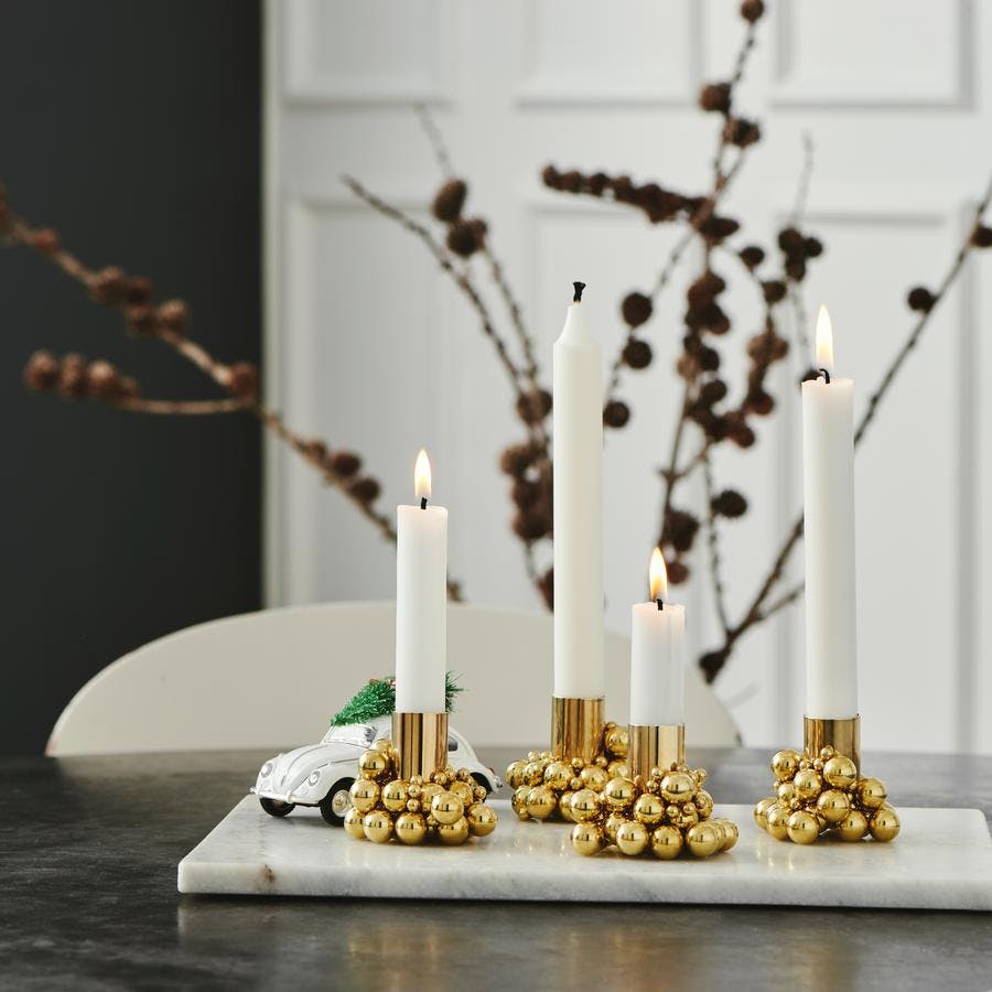 Gull og messing går aldri av moten og ser både tidløst og solid ut! Her får du 4 av samme lysestake, og du har en for hver søndag i advent. Fordelen med disse er at de ikke kun begrenser seg til jul.