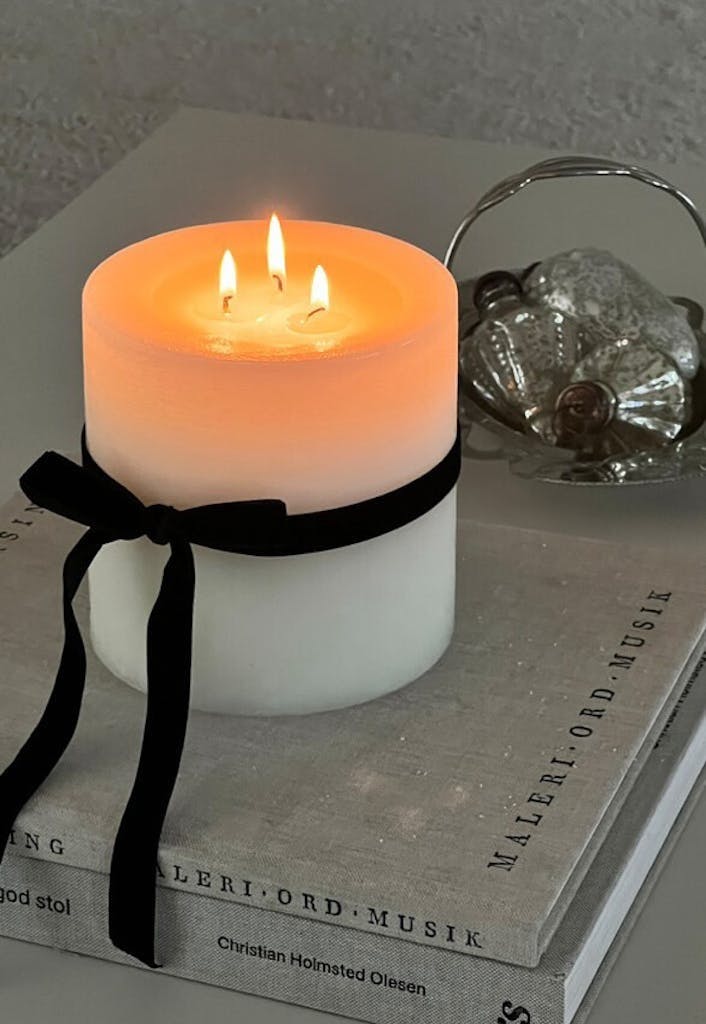 Blokklyset kan enten pynte i all sin enkelhet som hjemme hos Ann-Sophie Ulka, eller du kan binde en sløyfe rundt, slik Henriette Street Jarlstrøm har gjort, så det oser av jul i 2024.