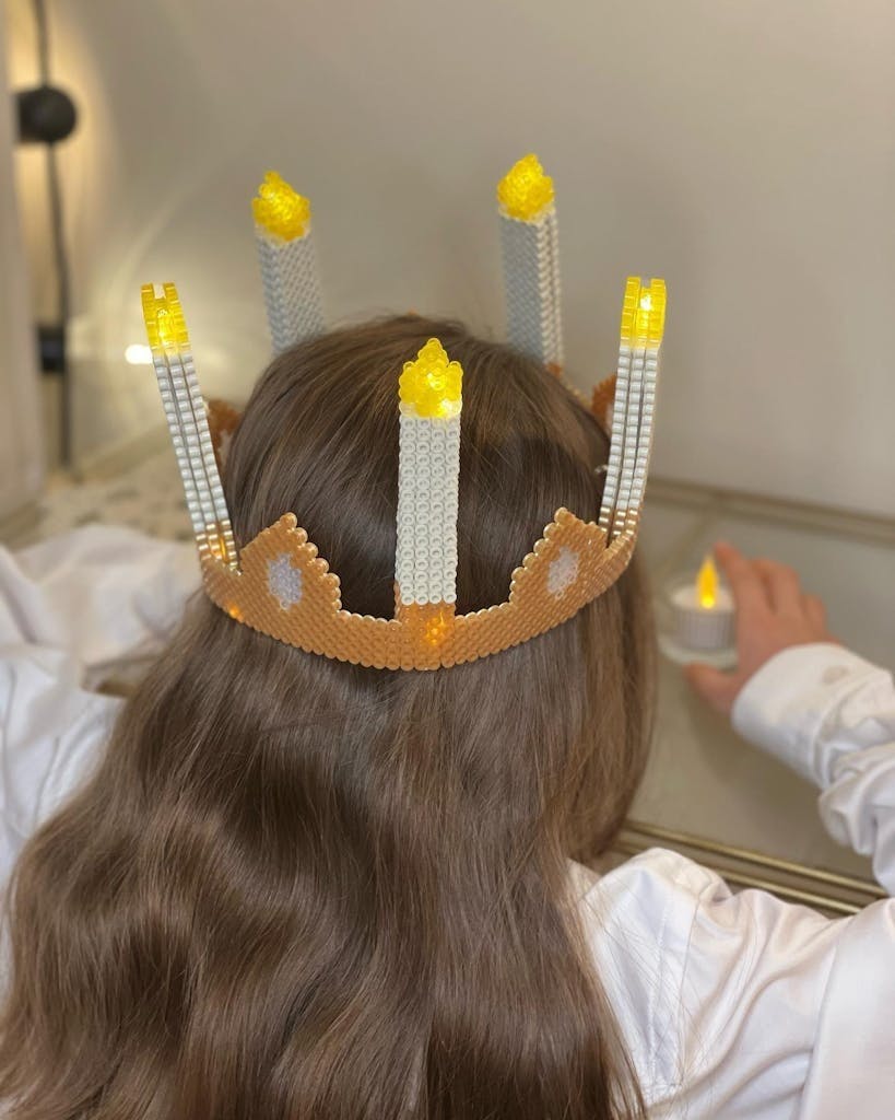 Prøv noe nytt denne juletiden med en vakker hjemmelaget luciakrone laget av juleperler. Og da er det god mulighet for å leke med farger og mønstre.