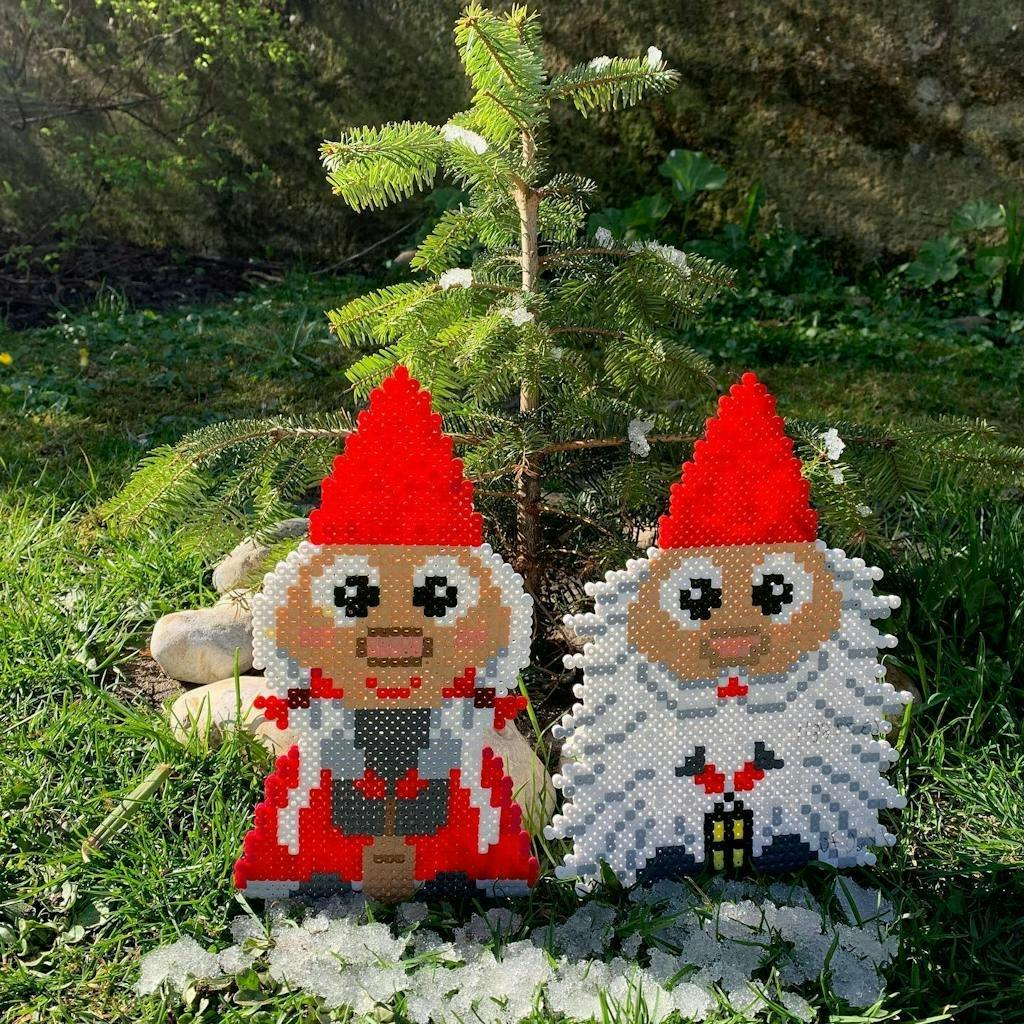Pynt hagen med disse super fine perlenissene med røde nisseluer.