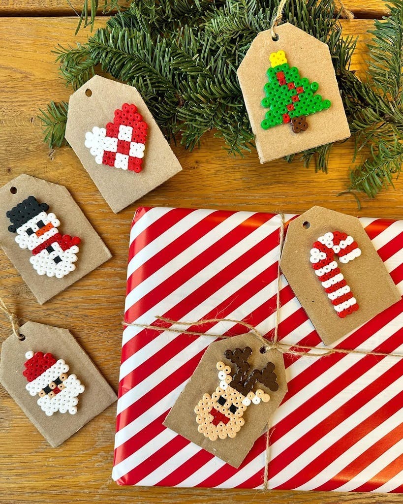 Lag personlige 'Til og fra'-kort av perleplater til julegavene dine, og gi gavene et unikt preg i år.
