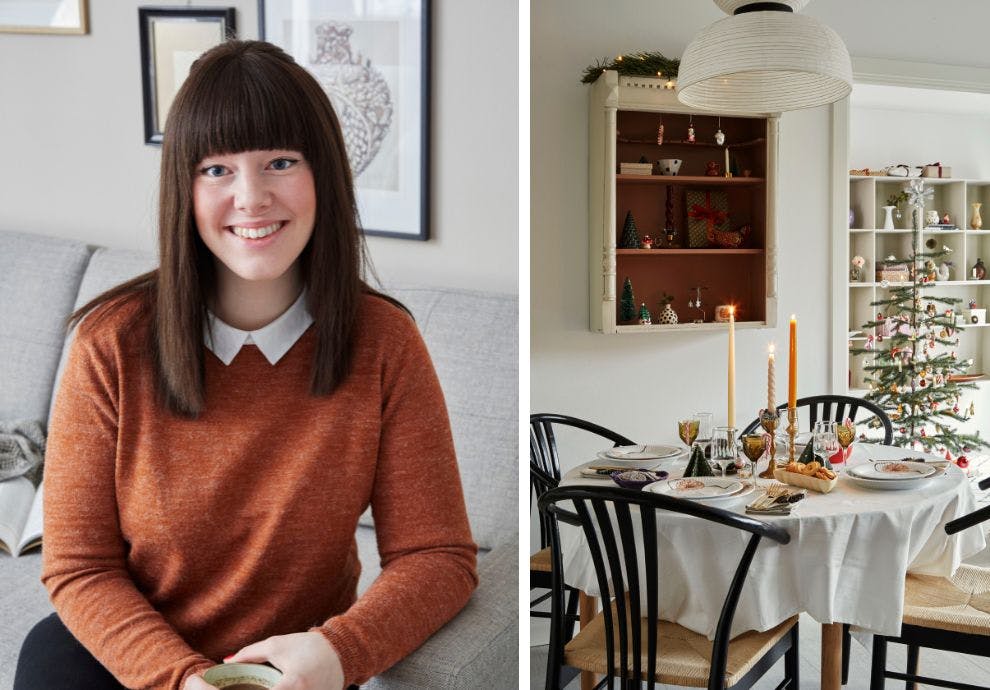 Dominique elsker å pøse på med pynt og kos i julen. Spisebordet er loppefunn. Benken kommer fra We do Wood.