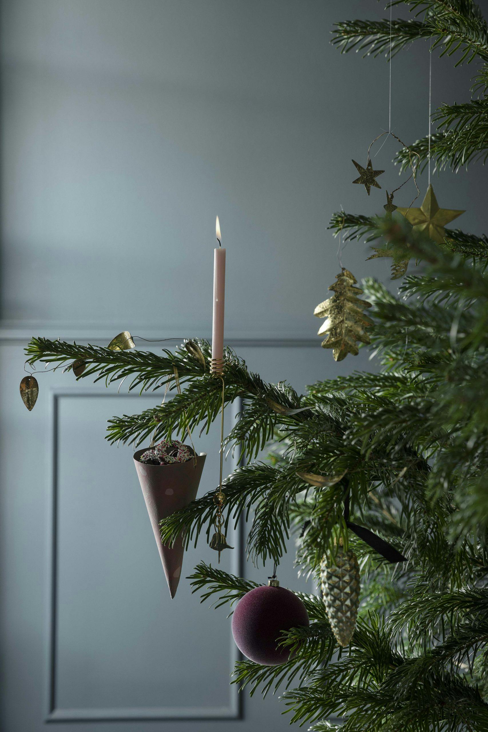 - Lysene er prikken over i-en på juletreet, og hvis du velger en utradisjonell farge gjør det en stor forskjell. Se bare hvordan de sarte, lilla lysene gjør uttrykket komplett.