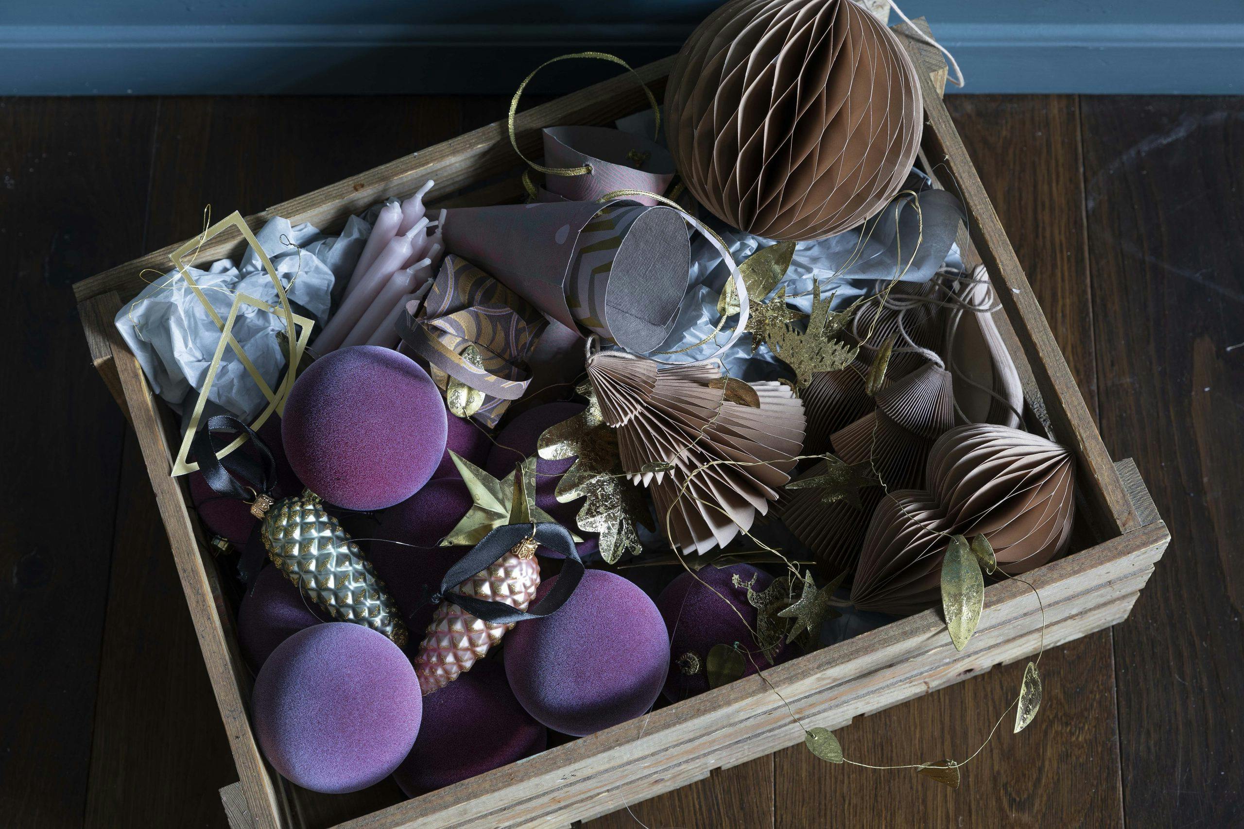 Samle julepynten i en fin trekasse