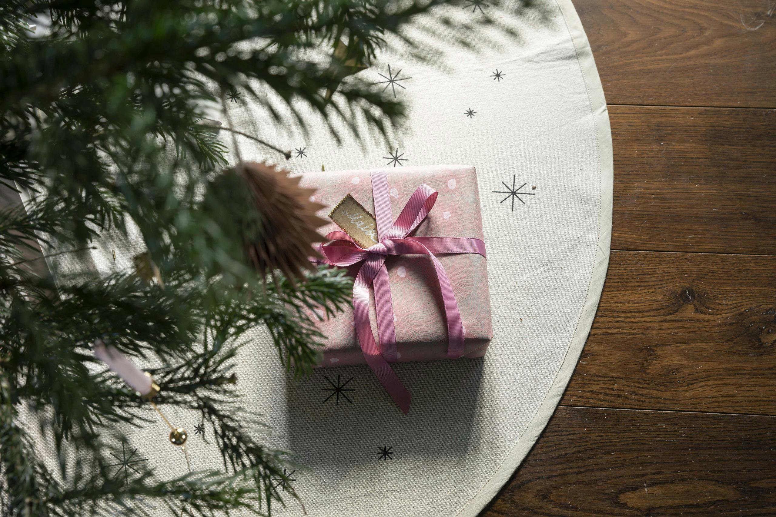 Juletreteppet er fra Ferm Living og gaveesken fra Bungalow.