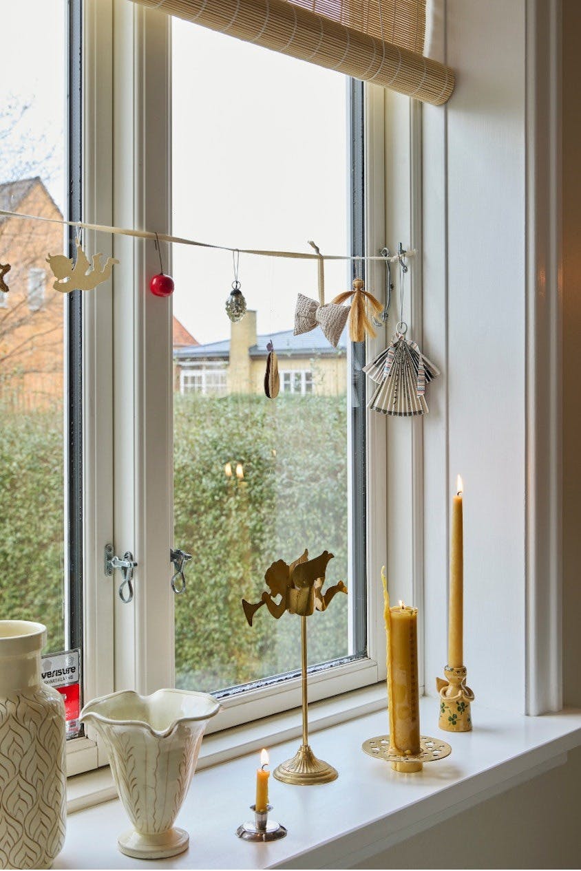 Skap julemagi både ute og inne ved å spenne opp et fint bånd i vinduet og fylle det med noe av favorittpynten din.