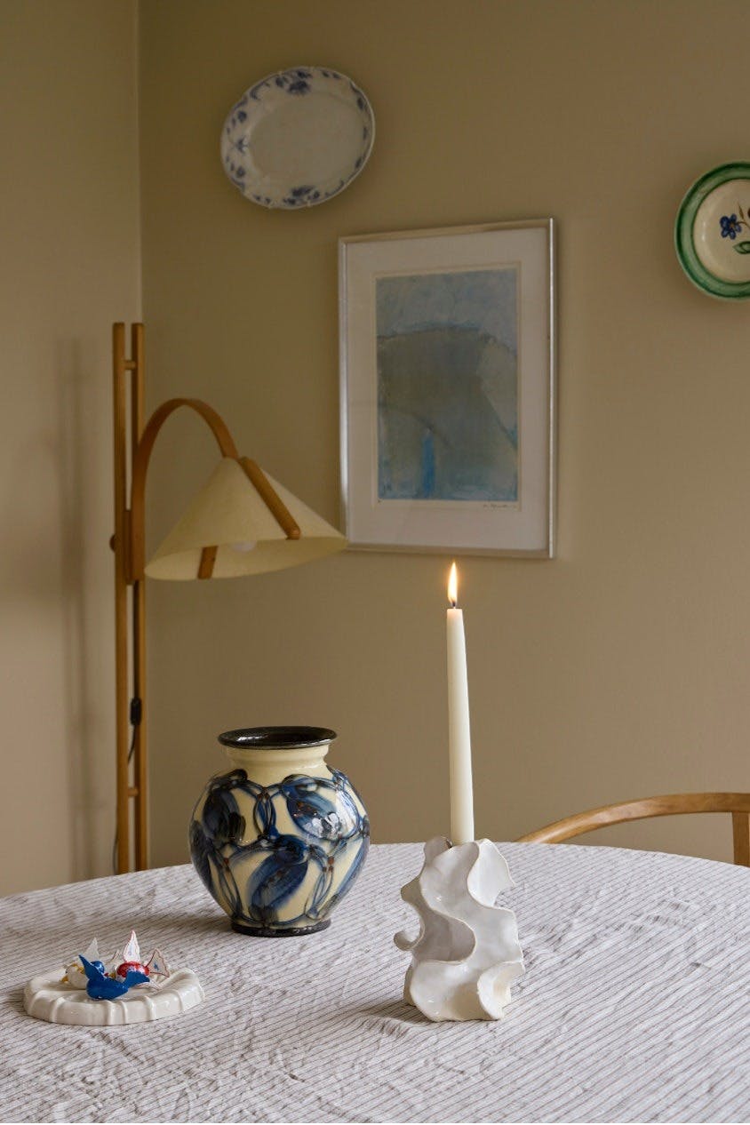 Pernille finner mesteparten av interiøret sitt i brukt- og vintagebutikker og på loppemarkeder. Jakten på fine bruktskatter er både en hobby og en viktig del av jobben hennes.