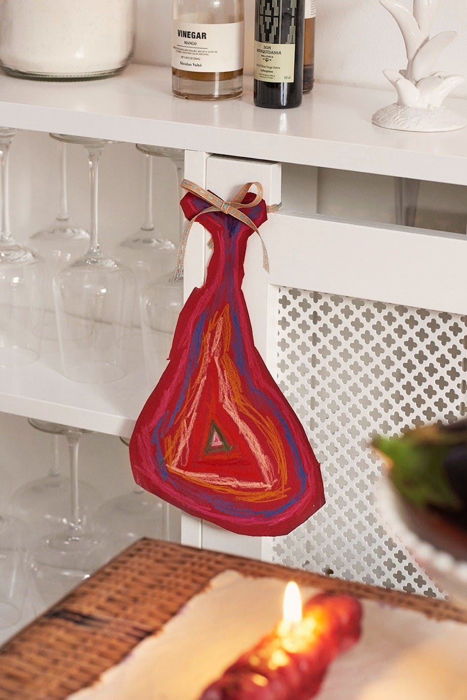 – Jeg elsker alt det som datteren min lager. Hun lagde denne skinken av papp i barnehagen for noen år siden, og den har blitt en fast del av julepynten vår. Jeg syns den er så kul! Husk å oppbevare julepynt av papp i en lufttett boks, og å stive av tingene av slik at de beholder formen fra år til år
