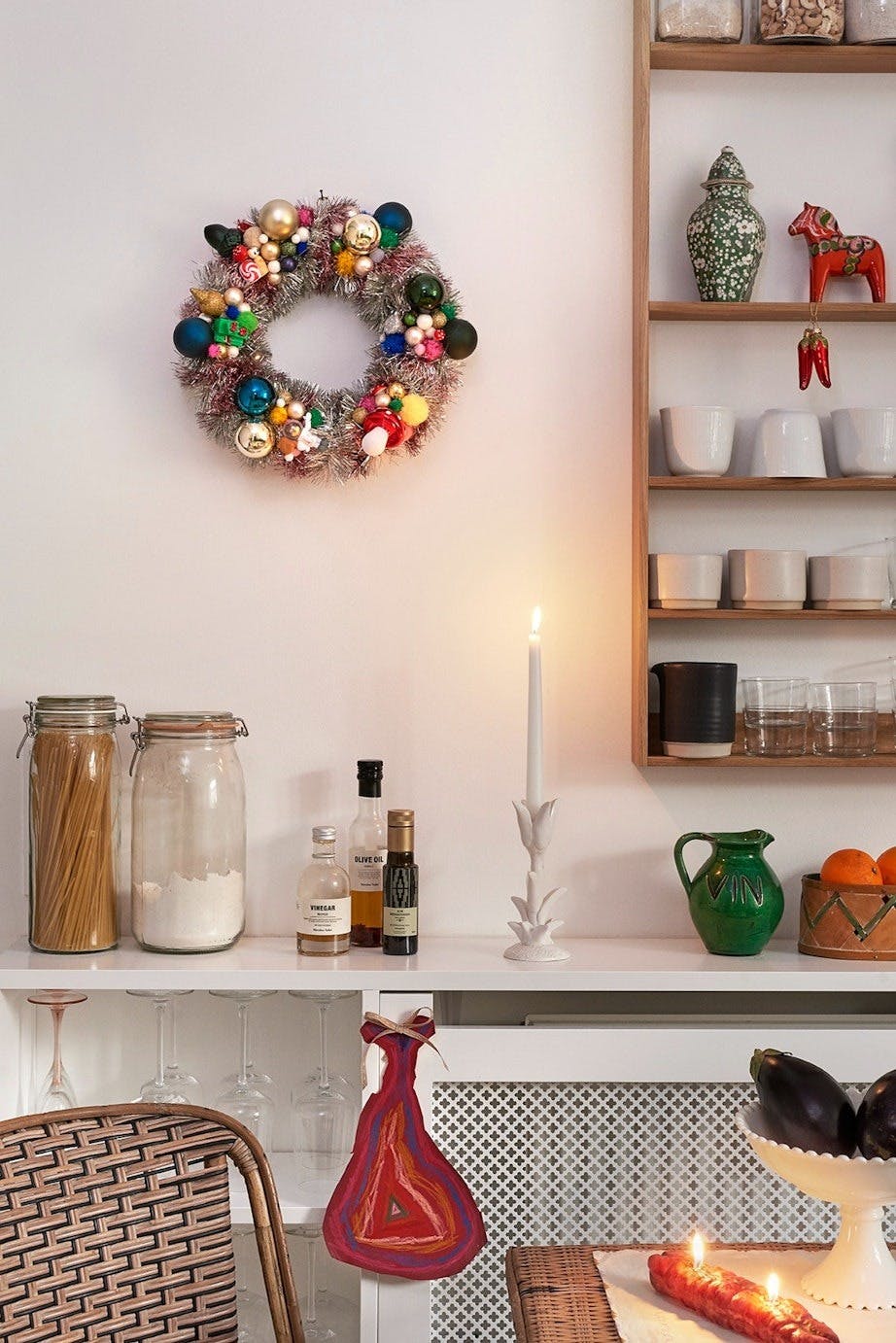 – Jeg vokste opp i et hjem der det ikke var så mye fokus på juletradisjoner og pynt, derfor har jeg prøvd å finne min egen måte å skape julestemning på i hjemmet vårt. Julepynten kan være i alle mulige farger, og det er fint om den passer naturlig inn i interiøret. Du kan for eksempel gi kjøkkenet en liten julemakeover med et par pynteting og levende lys.