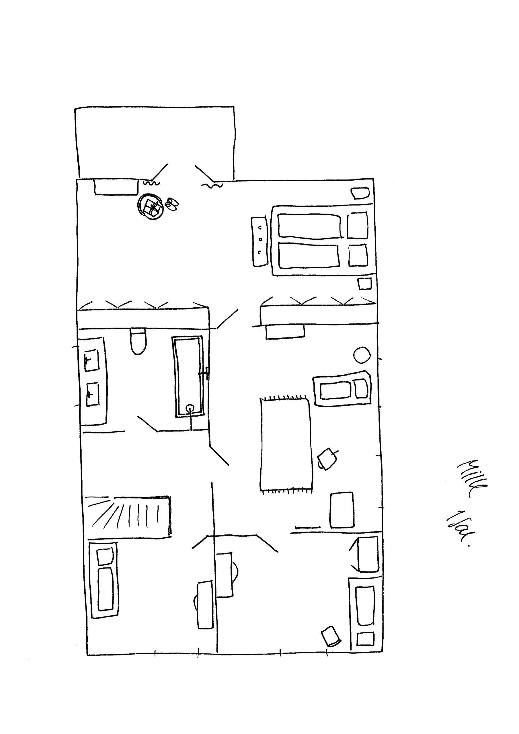 Den fine, blå Thonet-stolen ble kjøpt på en reise til Zürich. Julegavene får pynte opp frem til de skal åpnes på juleaften.