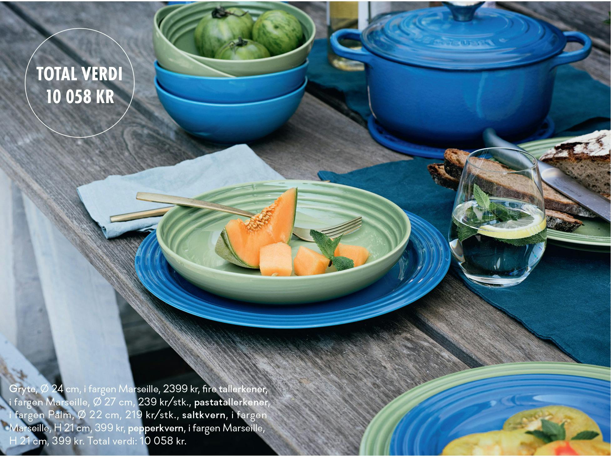 Denne måneden kan du vinne en komplett sommerpakke fra Le Creuset i de friske fargene Marseille og Palm. Vi deler ut to premiepakker til en verdi av 5029 kr/stk. Kanskje du er heldig?