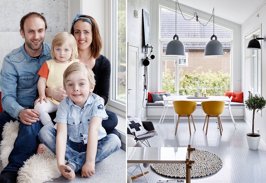 Janne-Marit, samboeren Martin og barna William (5) og Lilja (2) har totalrenovert boligen på Fannrem. Foto: Sveinung Bråthen