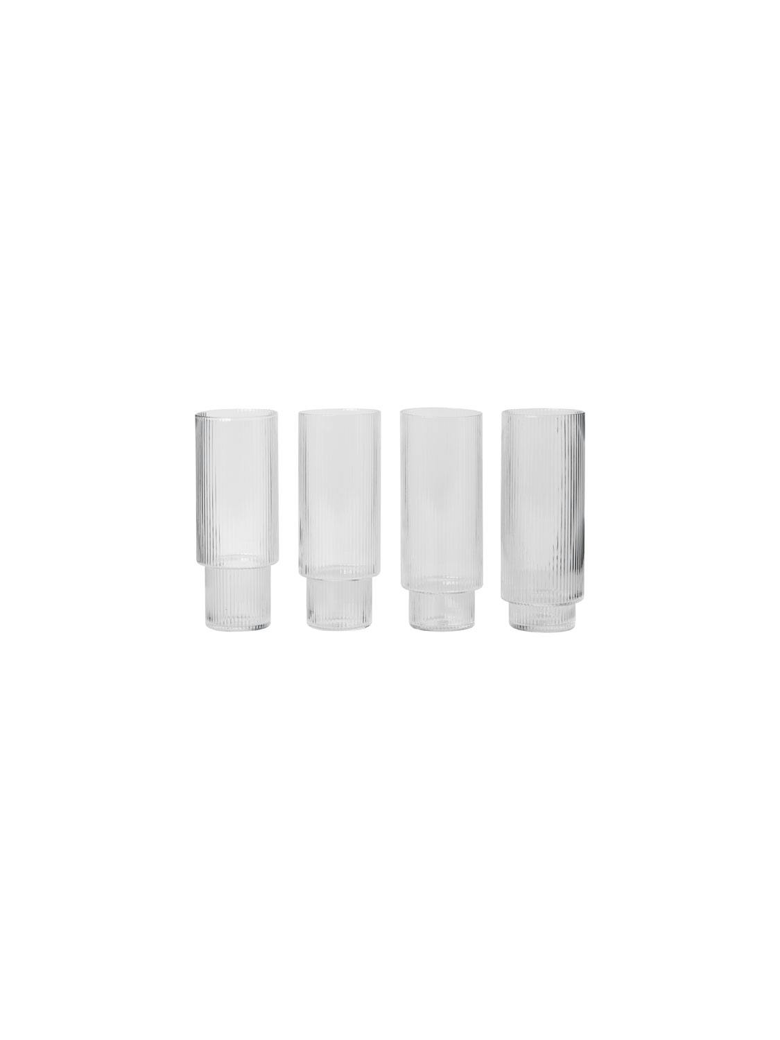 Drinkglass, Ripple, H 14 x Ø 7 cm, sett med fire, 499 kr, Ferm Living.
