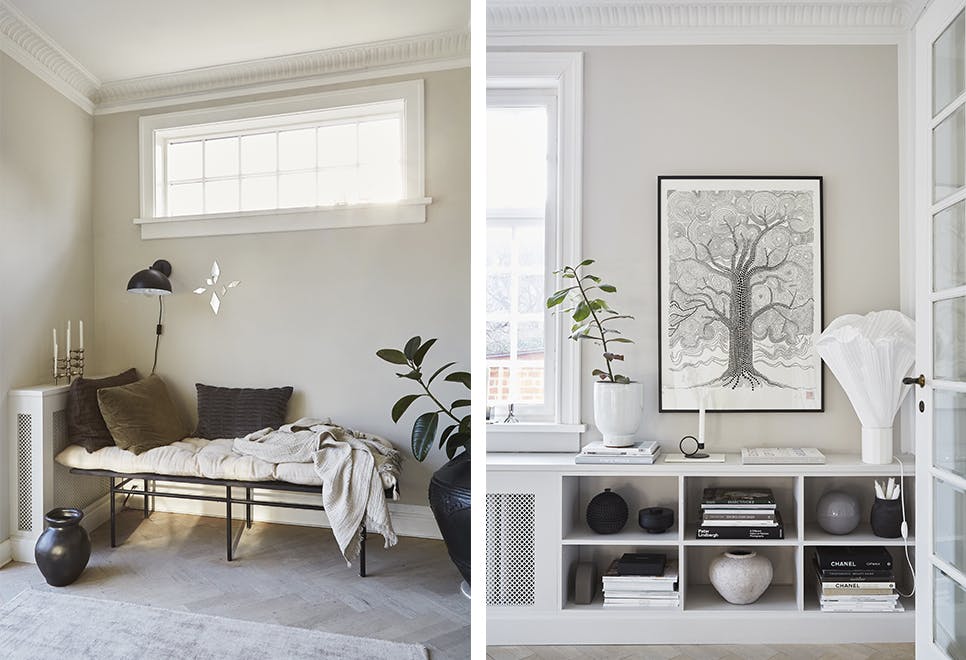 Før & etter Fra trist gjennomgangsrom til funksjonell ministue Ekstra stue, gjennomgangsrom og oppbevaring i ett! Det lille rommet foran terrassen var vanskelig å innrede, men med en plassbygd reol og lette møbler skapte Anitta en funksjonell og fargerik liten stue.